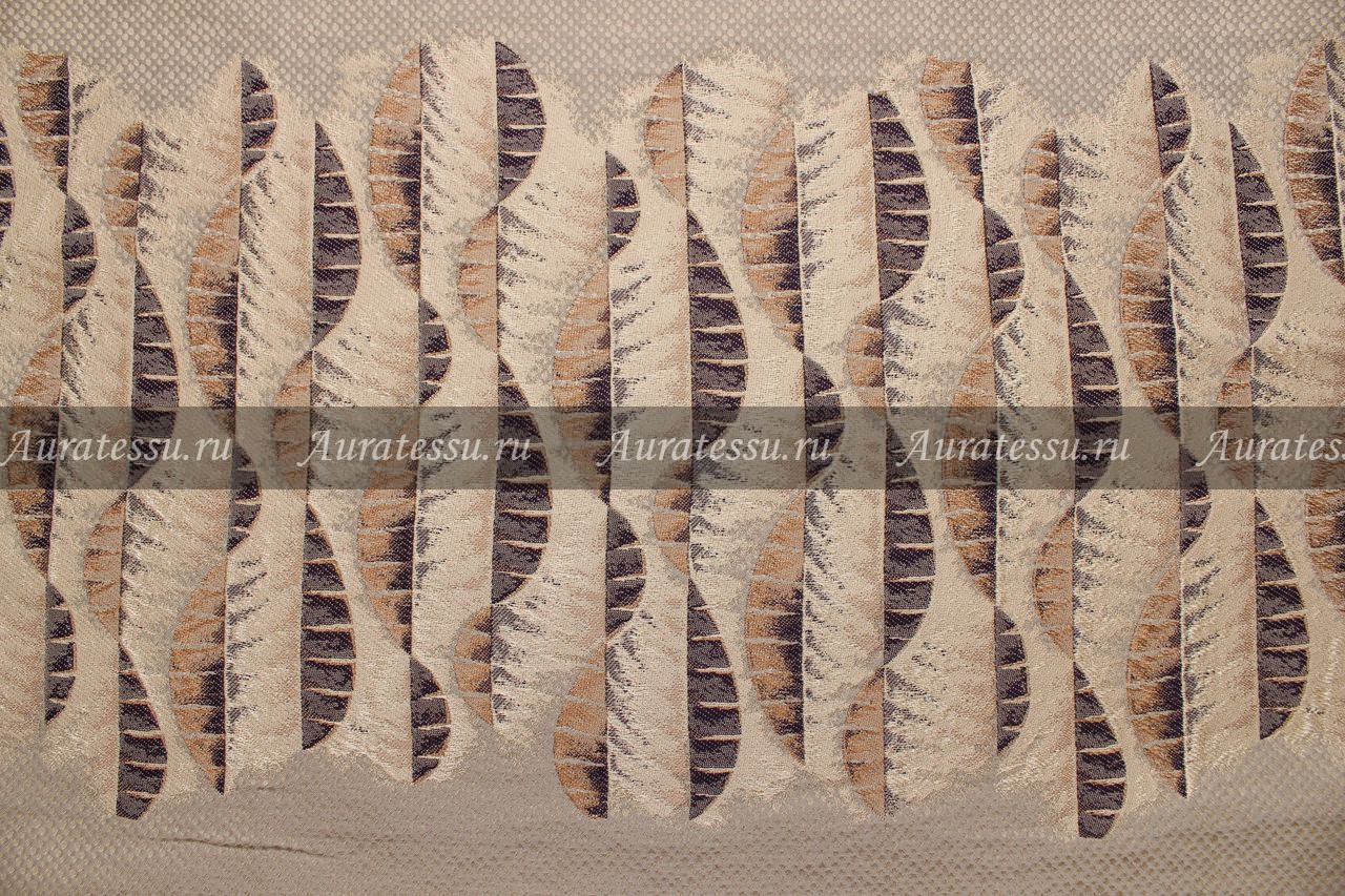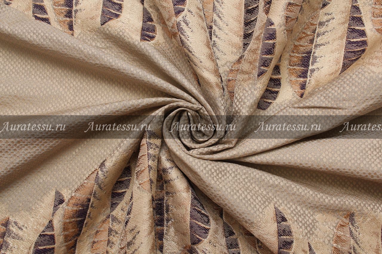 - Купон тафта-жаккард бежево-кремовый с лилово-песочной каймой "пёрышки"
