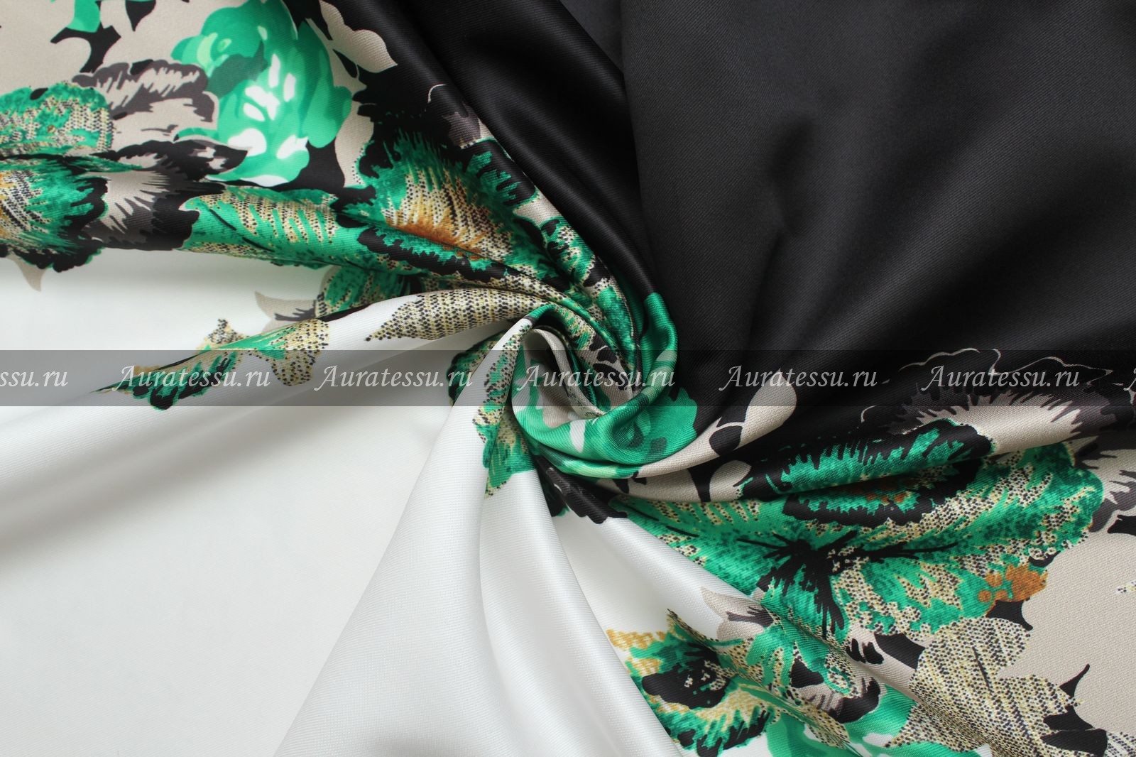 Дополнительная информация:Плотная костюмная ткань, диагонального переплетения, немного глянцевая с контрастным чёрно-белым цветом, разделённым поперечной цветочной полосой. Ширина цветочного орнамента 26 см. Цвета используемые в рисунке: бежевый, ярко-зелёный, горчичный. Чёрная и белая часть купона шириной примерно 50-60 см. Длина купона 132 см. Ткань гладкая, шлифованная, упругая, отлично держит форму. Подходит для пошива формованных платьев, юбок, жакетов прямых, классических, объёмных силуэтов. Рекомендации по уходуОбщие рекомендации по уходу, для разных типов тканей: Льняные вещи мало пачкаются, не ворсятся, прекрасно впитывают влагу и при этом быстро высыхают. Льняное полотно отличается особой прочностью. К благородным свойствам льна относят его сильную сминаемость. Льняные полотна можно кипятить. Температуру стирки выбирают в зависимости от отделки ткани. Цветное полотно стирают при температуре 60 градусов. Изделия изо льна после стирки могут дать усадку (если ткань перед пошивом не была продекатирована) до 15%. Изделия из хлопка очень прочные, хорошо переносящие воздействие высоких температур. Особенность хлопка — его прекрасная способность впитывать влагу. Недостатками хлопка называют его высокую сминаемость и сильную усадку при стирке. Хлопок долго сохнет после стирки. Белые хлопковые плотные ткани можно стирать в машине при максимальной температуре, цветные ткани — при температуре до 60 градусов, тонкие цветные ткани — при температуре до 40 градусов. Для стирки белых полотен используют универсальные моющие средства, для цветных — мягкие моющие средства и средства без отбеливателя. Хлопковые вещи можно сушить и в машинной сушке, но надо помнить, что при этом они могут дать большую усадку. Изделия с облагораживающей отделкой советую развешивать для просушки мокрыми.