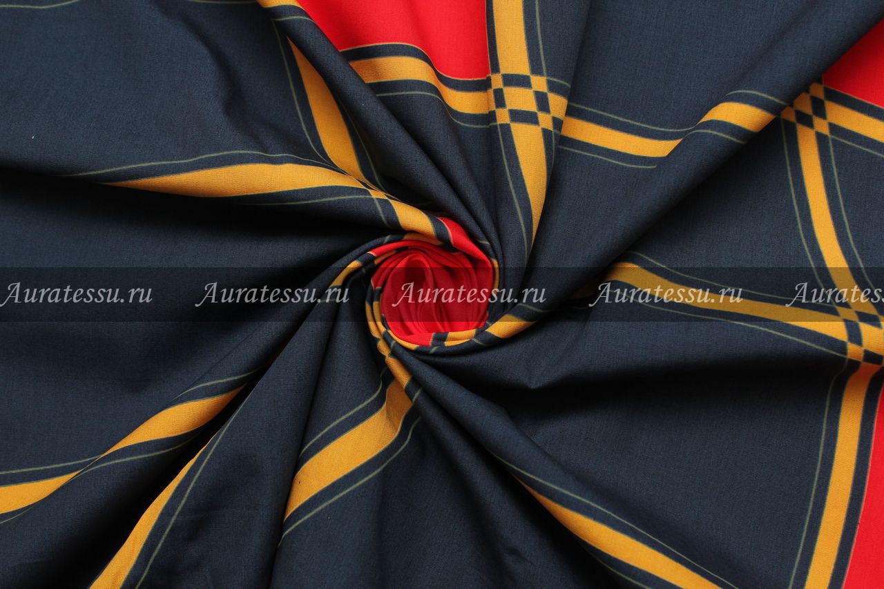 - Купон хлопок Escada синий с красным и жёлтым, зеркальный рисунок