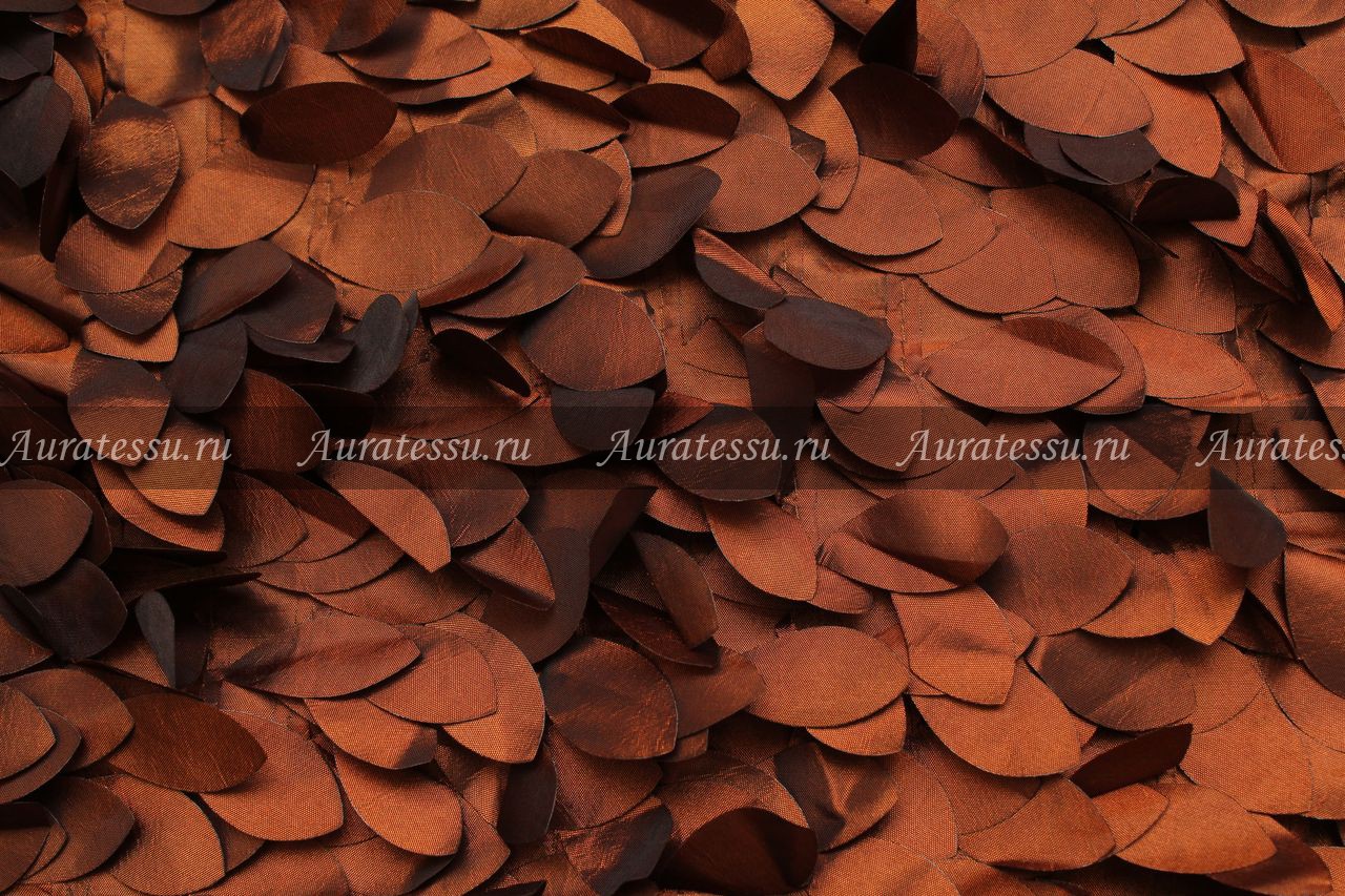 Дополнительная информация:Креативная тафта рыжевато-коричневого цвета с пришитой аппликацией в виде листиков 4х2 см. Листики вырезаны горячим способом для избежания осыпания краёв. Аппликация пришита часто, сквозь неё основа ткани не видна. Подходит для отделки изделий и самостоятельных сложных конструкторских решений. Рекомендации по уходуУход за тканями с вышивкой: Вышитые изделия долго сохраняют привлекательный вид и не повреждаются, но для сохранения первозданного внешнего вида изделий с вышивкой необходим правильный уход за ними. Мы будем говорить, как ухаживать за вышитыми изделиями. Нитки для вышивки могут быть шелковые, вискозные, синтетические, хлопчатобумажные, металлизированные и шерстяные. Вышивка может быть выполнена шелком на шерсти, хлопком на льне, или вискозой на шелке и т.д. Есть две характеристики, определяющие изделие: материал на котором вышивка и нитки, которыми она сделана. Для понимания, какой режим стирки и глажения допустим для вышитой ткани, разберитесь, что именно ткань или нитки требуют более щадящего, деликатного обращения. Выставите такую температуру утюга которая не нанесет вреда более деликатному материалу.
