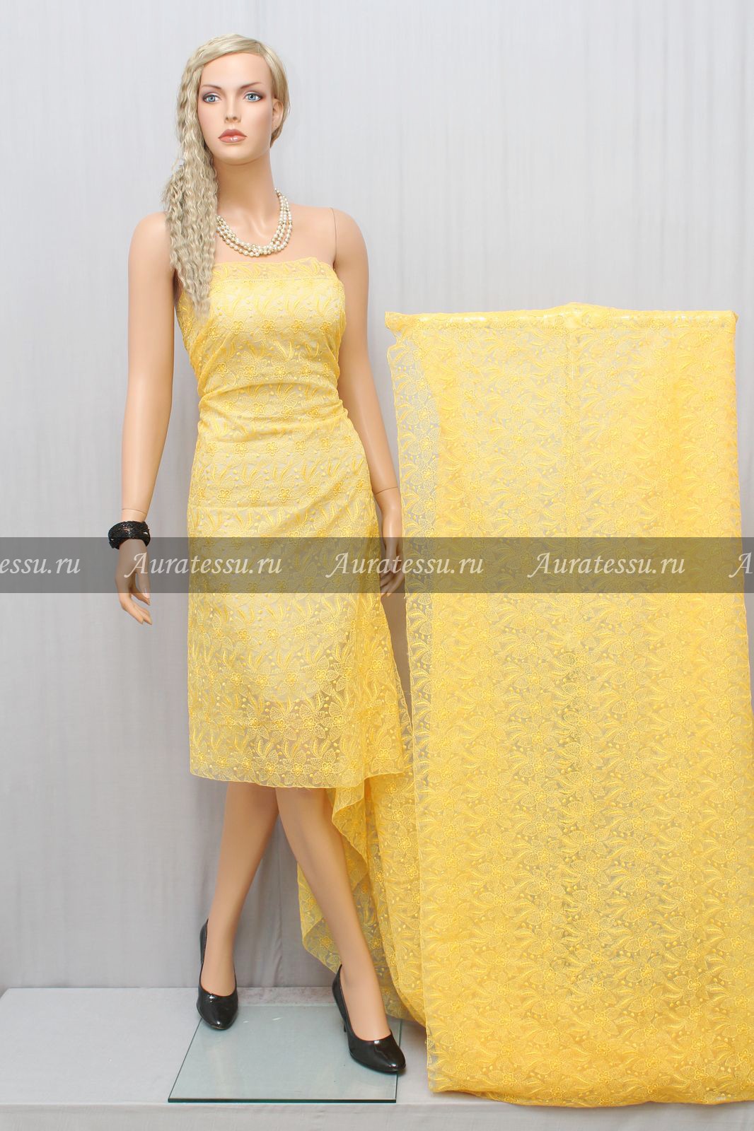 Дополнительная информация:Тонкая и полупрозрачная органза яркого жёлтого цвета с тонким, густым вышитым узором. Вышивка выполнена машинным способом имеет красивый силуэтный растительно-цветочный рисунок. Узор выполнен в цвет органзе и очень эффектно выглядит на прозрачной основе. Фестонов на ткани нет, но обе кромки обработаны швами вышивки. Ткань подходит для пошива нарядной одежды, а так же для разного рода отделок и украшений. Не любит узкий крой, желательна подкладка. На фото: 5-02813, 3-03005 Репс чёрный, костюмный, мягкий Рекомендации по уходуУход за тканями с вышивкой: Вышитые изделия долго сохраняют привлекательный вид и не повреждаются, но для сохранения первозданного внешнего вида изделий с вышивкой необходим правильный уход за ними. Мы будем говорить, как ухаживать за вышитыми изделиями. Нитки для вышивки могут быть шелковые, вискозные, синтетические, хлопчатобумажные, металлизированные и шерстяные. Вышивка может быть выполнена шелком на шерсти, хлопком на льне, или вискозой на шелке и т.д. Есть две характеристики, определяющие изделие: материал на котором вышивка и нитки, которыми она сделана. Для понимания, какой режим стирки и глажения допустим для вышитой ткани, разберитесь, что именно ткань или нитки требуют более щадящего, деликатного обращения. Выставите такую температуру утюга которая не нанесет вреда более деликатному материалу.