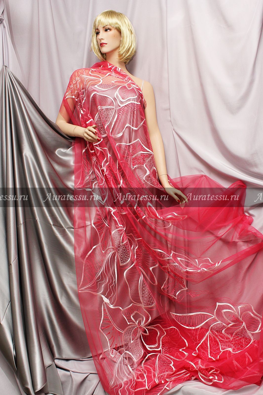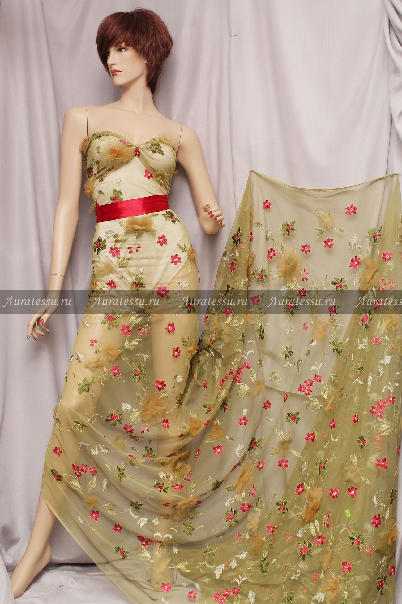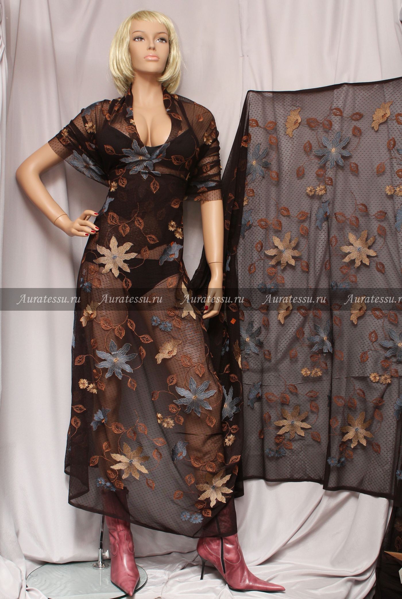 Ткани с вышивкой на кружеве или сетке занимают одно из первых мест по продаже ассортимента тканей для вечерних платьев. Фантазийные полупрозоачные ткани будоражат воображение. Из красивых вышитых кружевных тканей получаются произведения искусства. Если ткань расшита по кайме, то фасон и силует определяется расположением рисунка.