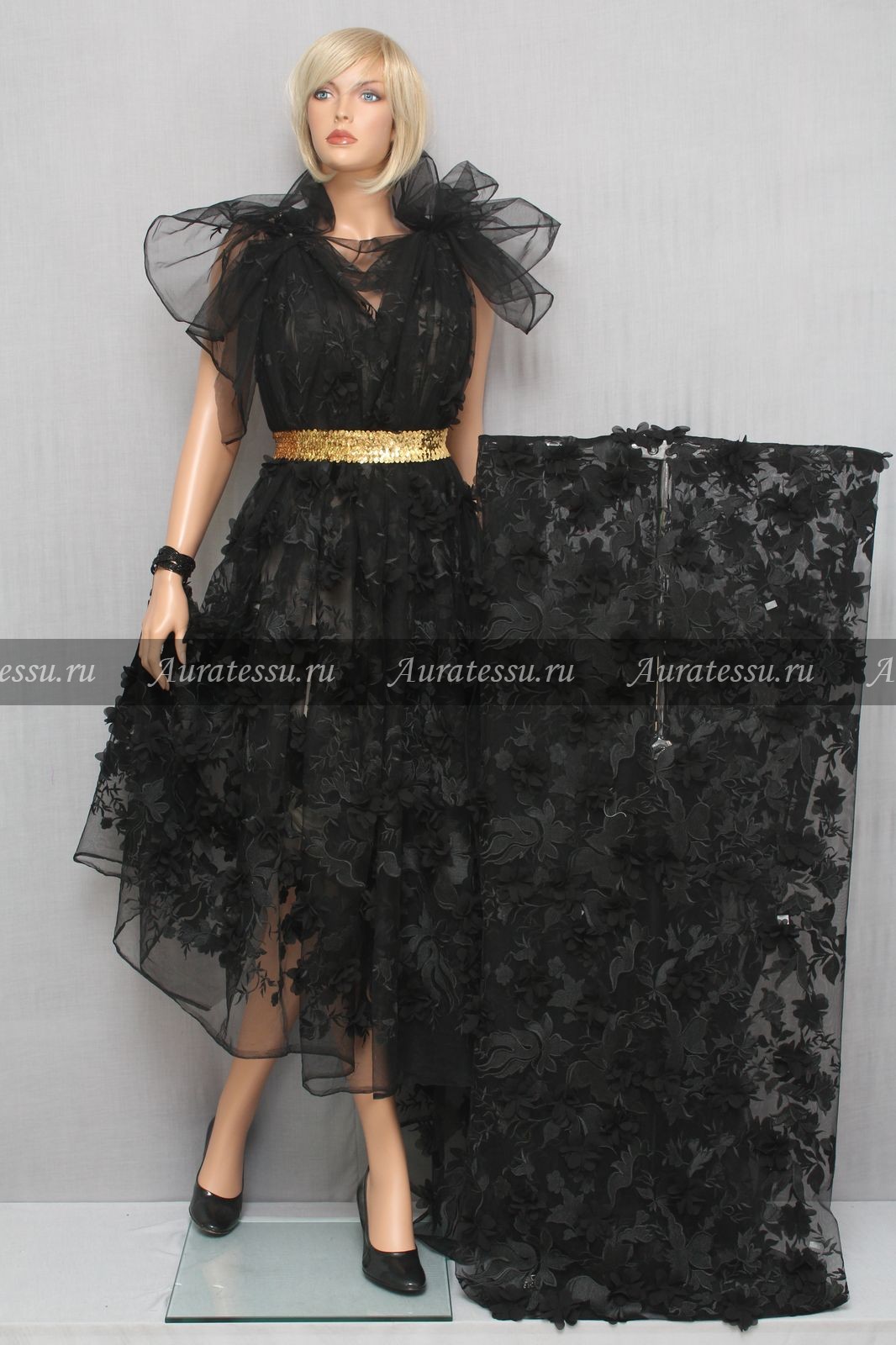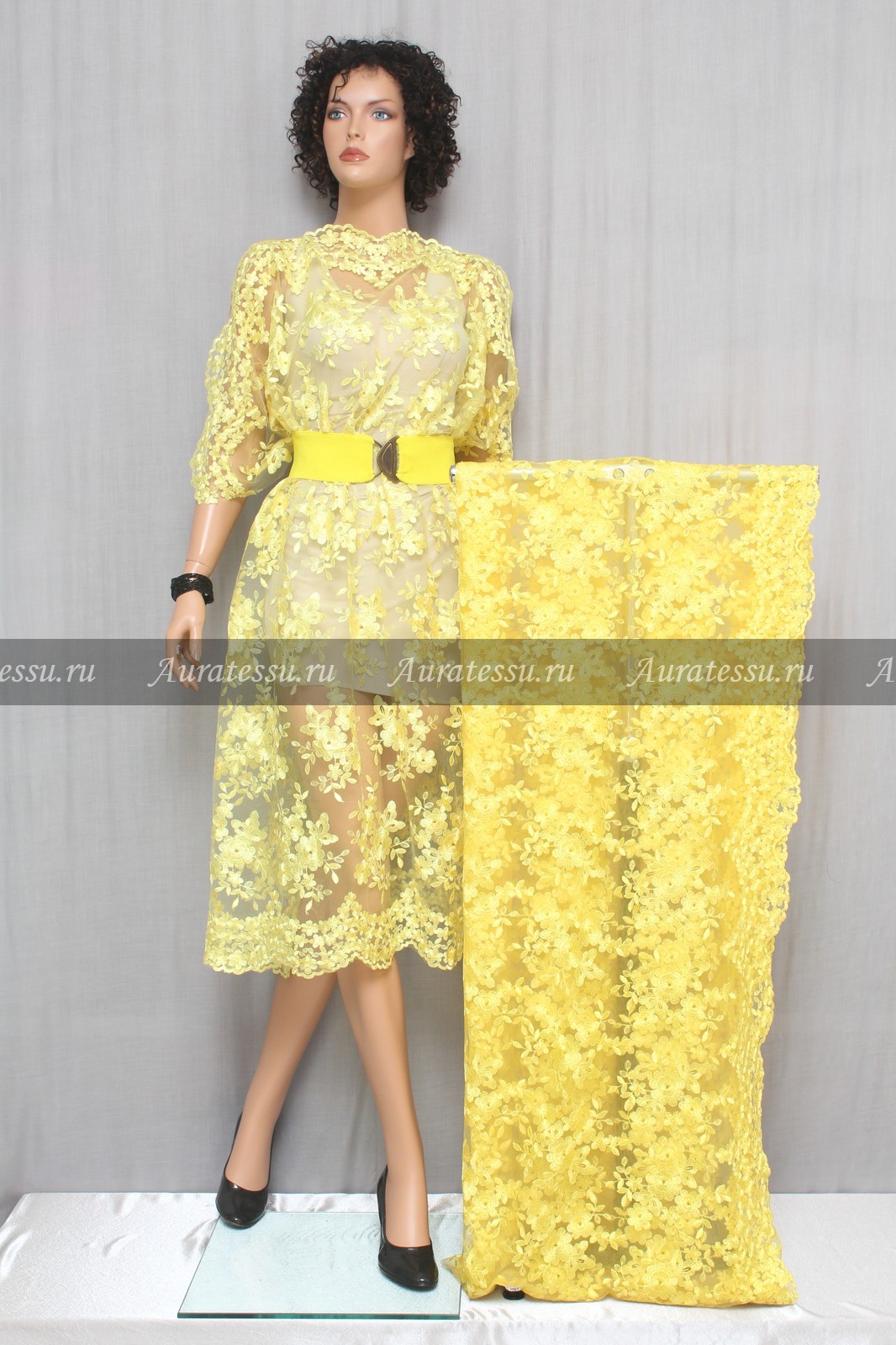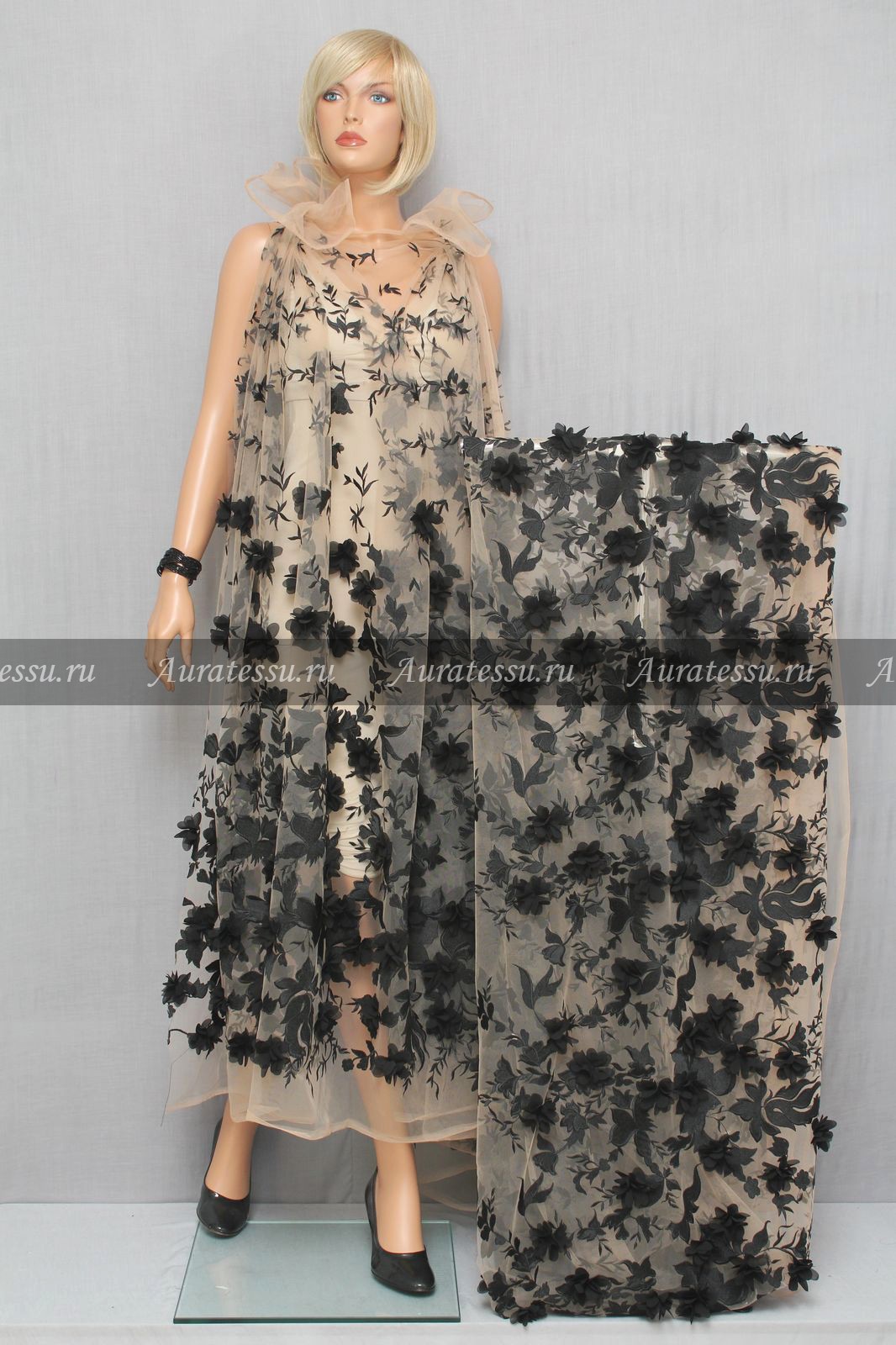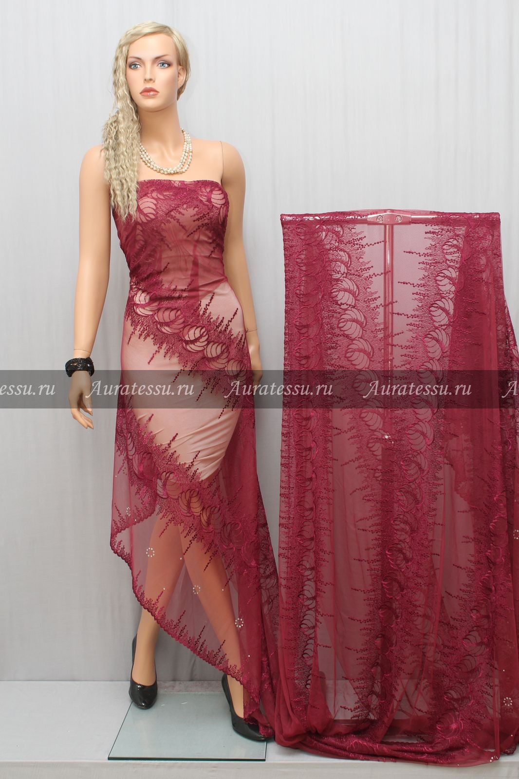 Ткани с вышивкой на кружеве или сетке занимают одно из первых мест по продаже ассортимента тканей для вечерних платьев. Фантазийные полупрозоачные ткани будоражат воображение. Из красивых вышитых кружевных тканей получаются произведения искусства. Если ткань расшита по кайме, то фасон и силует определяется расположением рисунка.