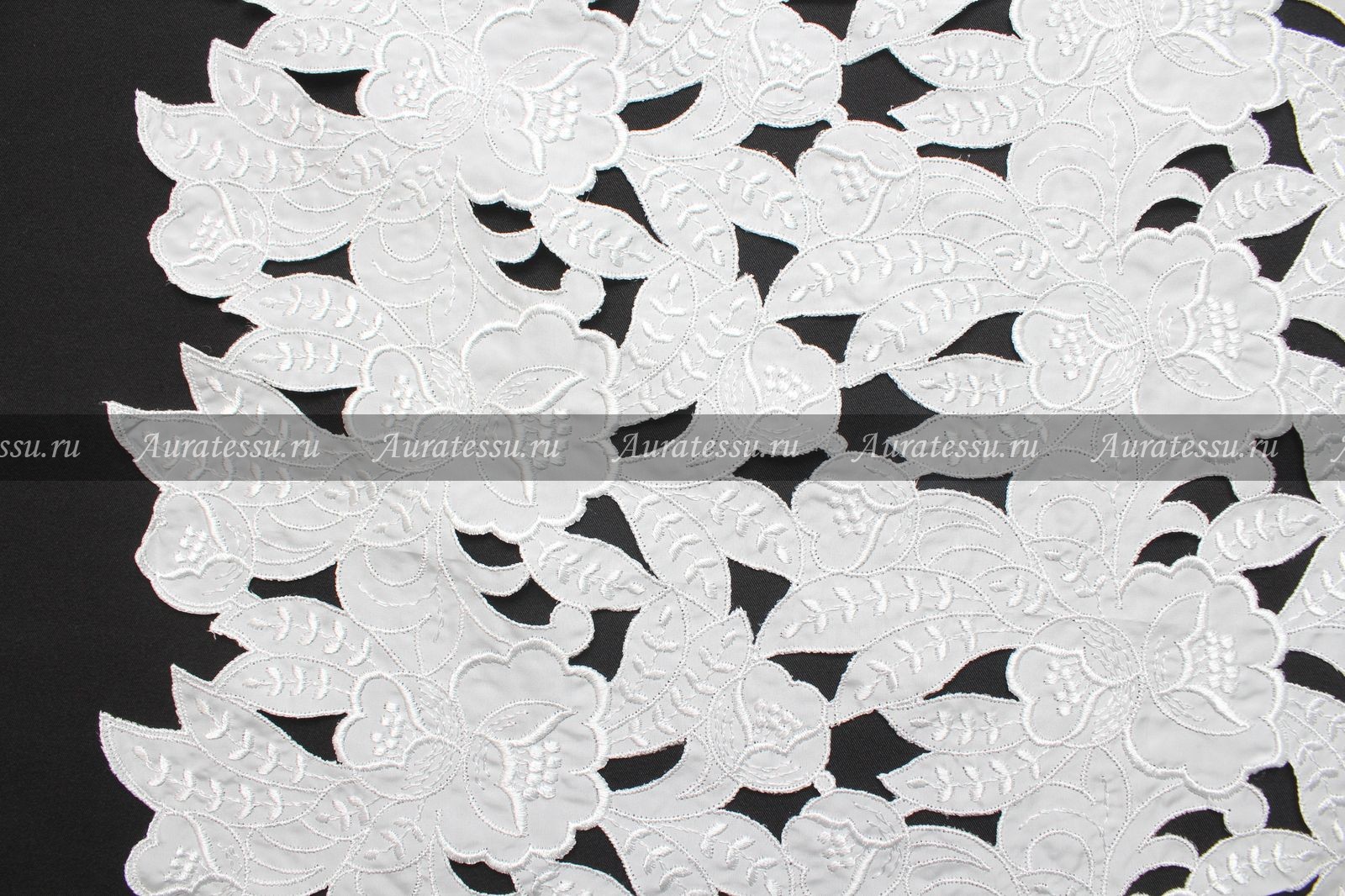 Вышивка ришелье (perfori) хлопком на тафте белого цвета, кайма
