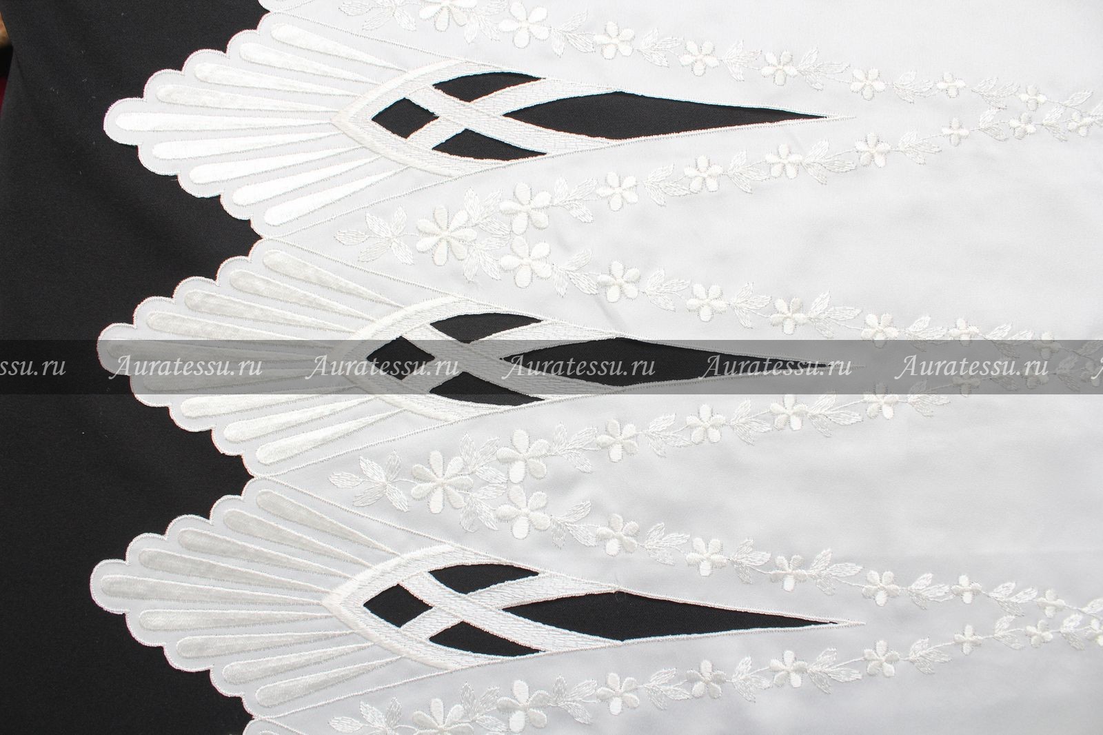 Вышивка-ришелье (perfori) хлопком на сатине молочно-кремового цвета, кайма