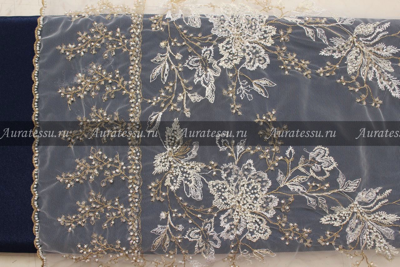 Дополнительная информация:Вышивка с бисером и стеклярусом на молочной мягкой сетке. Рисунок вышивки вдоль одной кромки, примерно от середины полотна. Узор растительно-цветочный, поперечный, вышит бежевыми и кремовыми нитками и украшен белым, кремовым бисером и стеклярусом (рубка). Вдоль рисунка густой, расшитый фестон. С противоположной стороны так же фестон, но тонкий и так же расшитый бисером и стеклярусом. По всему полотну вышитые маленькие букетики. Полотно достаточно тяжёлое, изящное. Подходит для пошива нарядной, свадебной одежды прямых и объёмных силуэтов. Рекомендации по уходуУход за тканями с вышивкой: Вышитые изделия долго сохраняют привлекательный вид и не повреждаются, но для сохранения первозданного внешнего вида изделий с вышивкой необходим правильный уход за ними. Мы будем говорить, как ухаживать за вышитыми изделиями. Нитки для вышивки могут быть шелковые, вискозные, синтетические, хлопчатобумажные, металлизированные и шерстяные. Вышивка может быть выполнена шелком на шерсти, хлопком на льне, или вискозой на шелке и т.д. Есть две характеристики, определяющие изделие: материал на котором вышивка и нитки, которыми она сделана. Для понимания, какой режим стирки и глажения допустим для вышитой ткани, разберитесь, что именно ткань или нитки требуют более щадящего, деликатного обращения. Выставите такую температуру утюга которая не нанесет вреда более деликатному материалу.