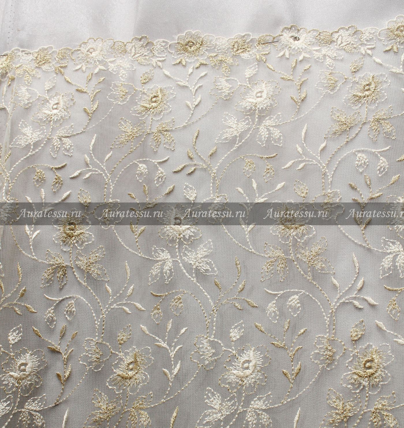 Дополнительная информация:Вышивка на мягкой полупрозрачной сетке молочного цвета. Вышивка достаточно густая, мелкая с двумя изящными фестонами по обеим кромкам. Узор растительный. В рисунке вышивки нити двух оттенков: молочно-белой и бежево-кремовой. Благодаря двум оттенкам, узор выглядит объёмно. Подходит для нарядной, свадебной одежды, а так же для различных отделок. Рекомендации по уходуУход за тканями с вышивкой: Вышитые изделия долго сохраняют привлекательный вид и не повреждаются, но для сохранения первозданного внешнего вида изделий с вышивкой необходим правильный уход за ними. Мы будем говорить, как ухаживать за вышитыми изделиями. Нитки для вышивки могут быть шелковые, вискозные, синтетические, хлопчатобумажные, металлизированные и шерстяные. Вышивка может быть выполнена шелком на шерсти, хлопком на льне, или вискозой на шелке и т.д. Есть две характеристики, определяющие изделие: материал на котором вышивка и нитки, которыми она сделана. Для понимания, какой режим стирки и глажения допустим для вышитой ткани, разберитесь, что именно ткань или нитки требуют более щадящего, деликатного обращения. Выставите такую температуру утюга которая не нанесет вреда более деликатному материалу.