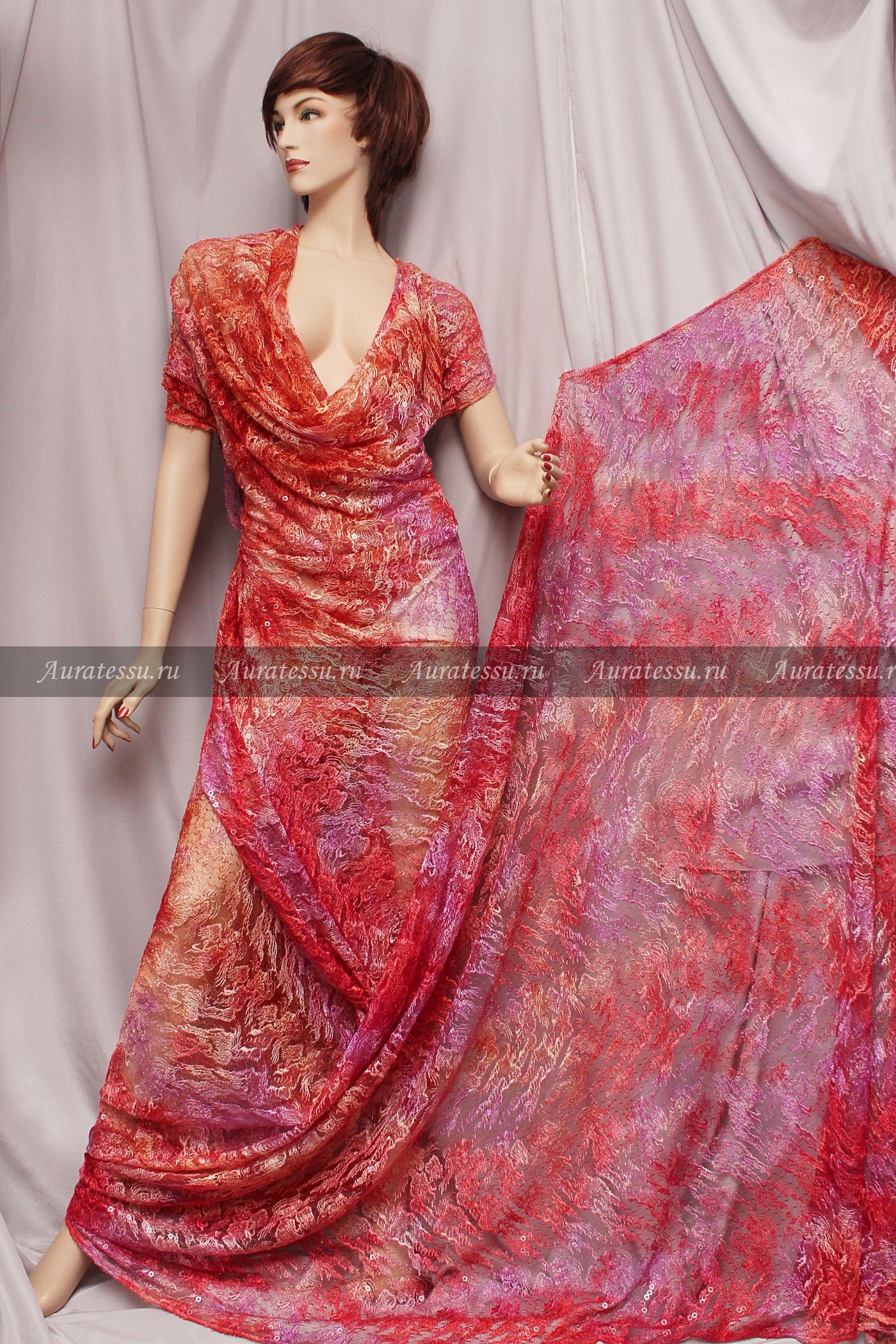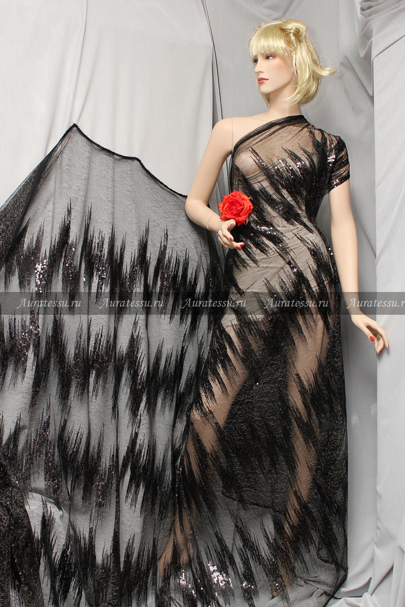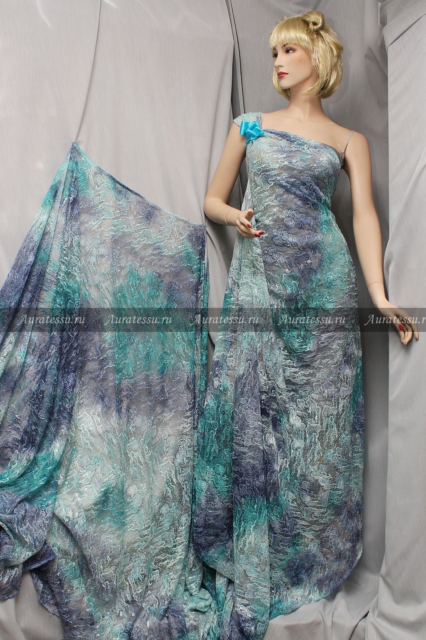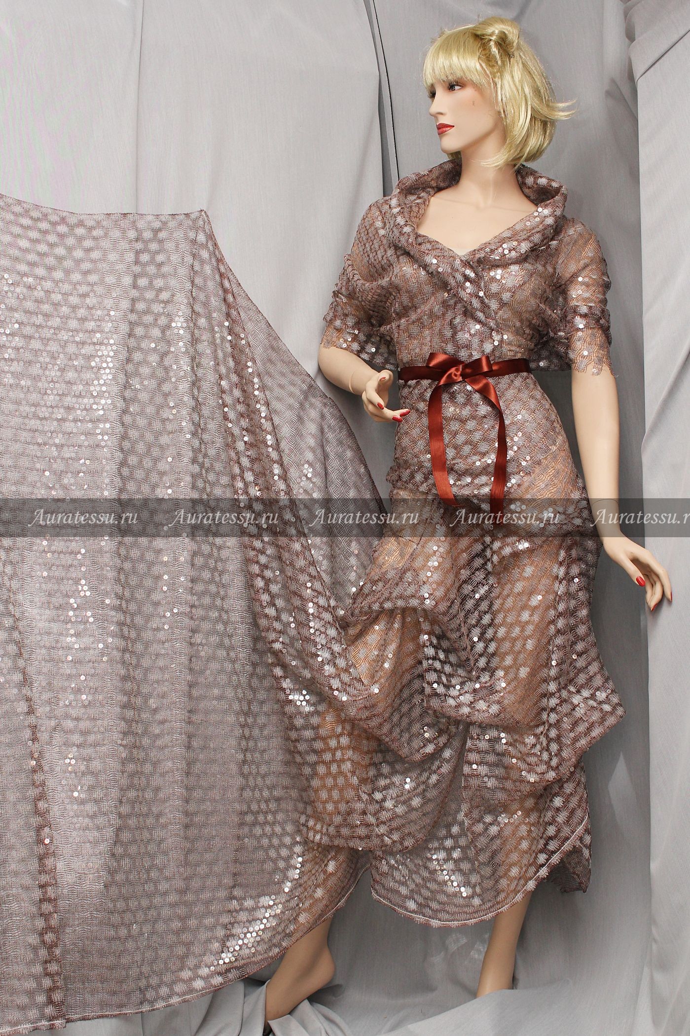 - Состав: 87% шелк, 5% хлопок, 5% люрекс, 3% эластан