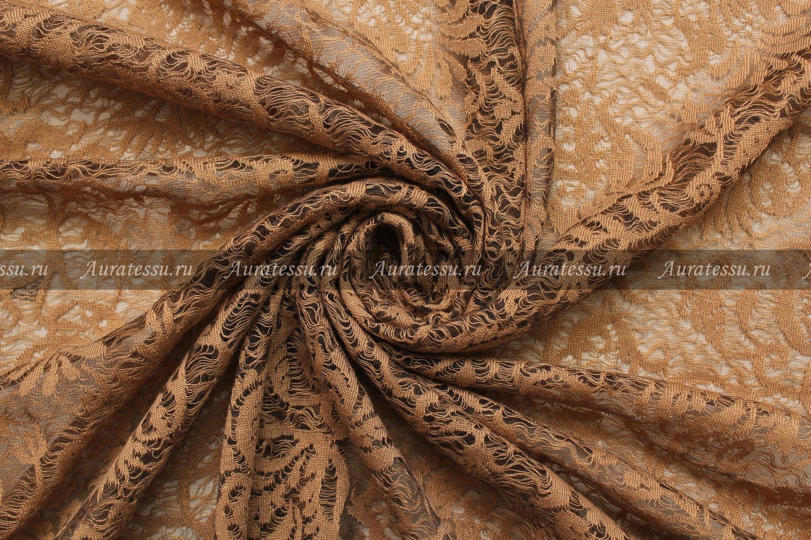 Ажурный трикотаж стрейч табачно-бежевого цвета