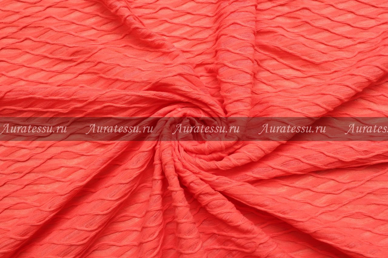 Трикотаж-жаккард-стрейч ярко-коралловый