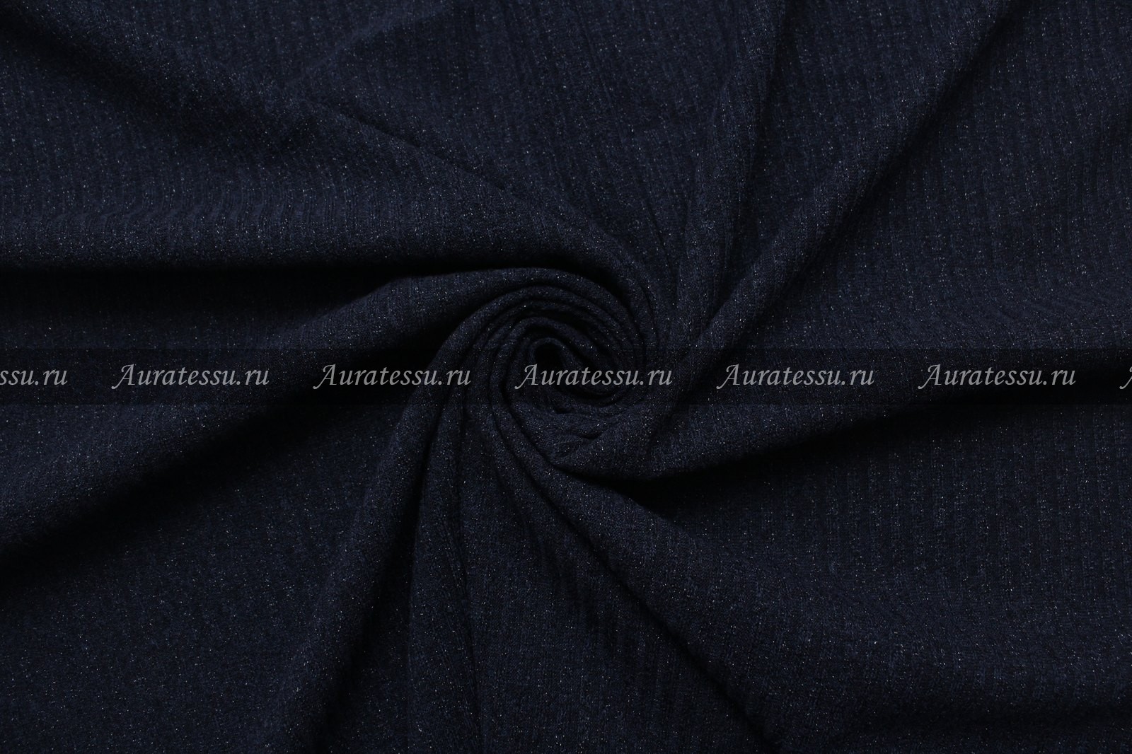Трикотаж стрейч в резинку тёмно-синий с люрексом