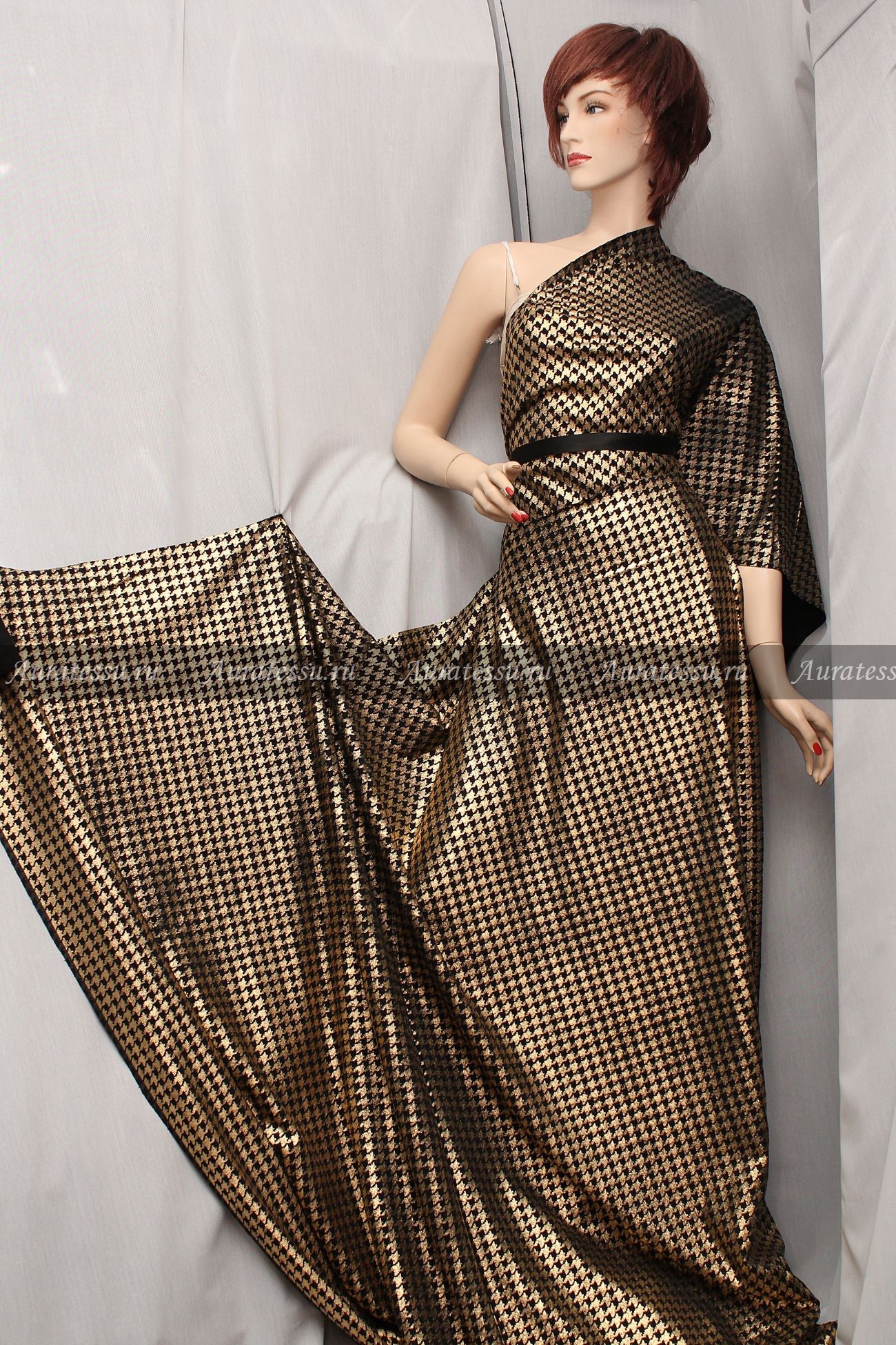 Трикотаж с золотистым или серебристым люрексом, или с добавлением люрексовых нитей медного, бронзового или других цветов, наряду с блестящими тканями других видов , снова в моде.