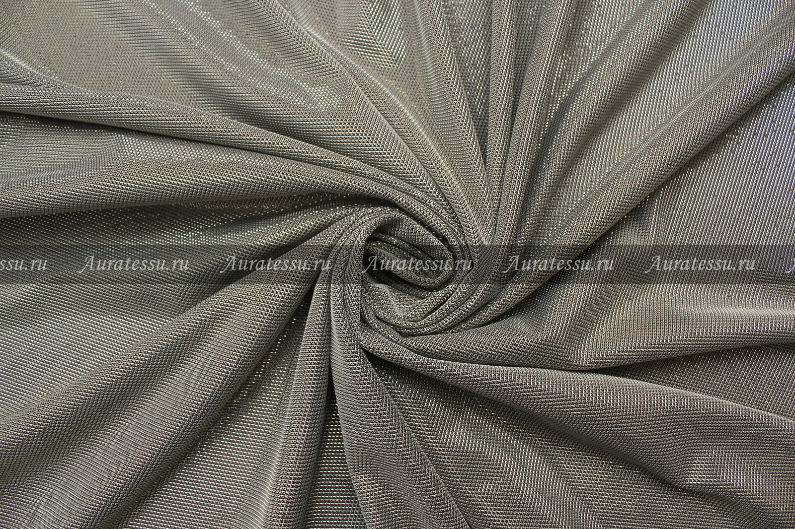 Дополнительная информация:Двухслойное трикотажное полотно чёрного цвета, средней плотности. Нижний слой шелковистый, тонкий трикотаж с лицевыми петлями на изнаночной стороне. По лицевой стороне трикотаж сдублирован с белой полупрозрачной сеткой, в волокна которой вплетён бледно-золотистый люрекс. Блеск яркий. Трикотаж пластичный, практически не сминается. Подходит для пошива разнообразных нарядных изделий от узких, до объёмных силуэтов. Требует деликатного ухода. Рекомендации по уходуДжерси, трикотаж шерстяной, полушерстяной: Стирать трикотаж из шерсти рекомендуется в воде комнатной температуры (до 30°С) с использованием качественного жидкого моющего средства - для деликатных тканей. Режим стирки – для деликатных тканей или шерсть, без отжима, иначе изделие сваляется и будет валенок. Лучше отжимать трикотаж вручную, закатав изделие в махровое полотенце и сжимающими движениями, удалив излишнюю влагу. Сушить трикотажные изделия нужно наизнанку , в расправленном виде на подложке, вдали от обогревательных приборов, избегая прямого попадания солнечных лучей. Помните, что чем деликатнее ткань и ее структура, тем более деликатным должен быть уход за изделием.