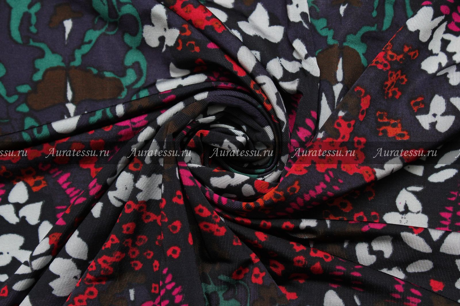 Дополнительная информация:Тонкий, но не прозрачный эластичный вискозный трикотаж под шёлк. Полотно чёрного цвета с не крупным растительно цветочным узором в алых, цвета яркой фуксии, серых, изумрудных, тёмно-синих тонах. Трикотаж достаточно скользкий, очень пластичный и одновременно тяжёлый. Подходит для пошива лёгкой одежды разнообразных моделей и силуэтов. Рекомендации по уходуДжерси, трикотаж шерстяной, полушерстяной: Стирать трикотаж из шерсти рекомендуется в воде комнатной температуры (до 30°С) с использованием качественного жидкого моющего средства - для деликатных тканей. Режим стирки – для деликатных тканей или шерсть, без отжима, иначе изделие сваляется и будет валенок. Лучше отжимать трикотаж вручную, закатав изделие в махровое полотенце и сжимающими движениями, удалив излишнюю влагу. Сушить трикотажные изделия нужно наизнанку , в расправленном виде на подложке, вдали от обогревательных приборов, избегая прямого попадания солнечных лучей. Помните, что чем деликатнее ткань и ее структура, тем более деликатным должен быть уход за изделием.
