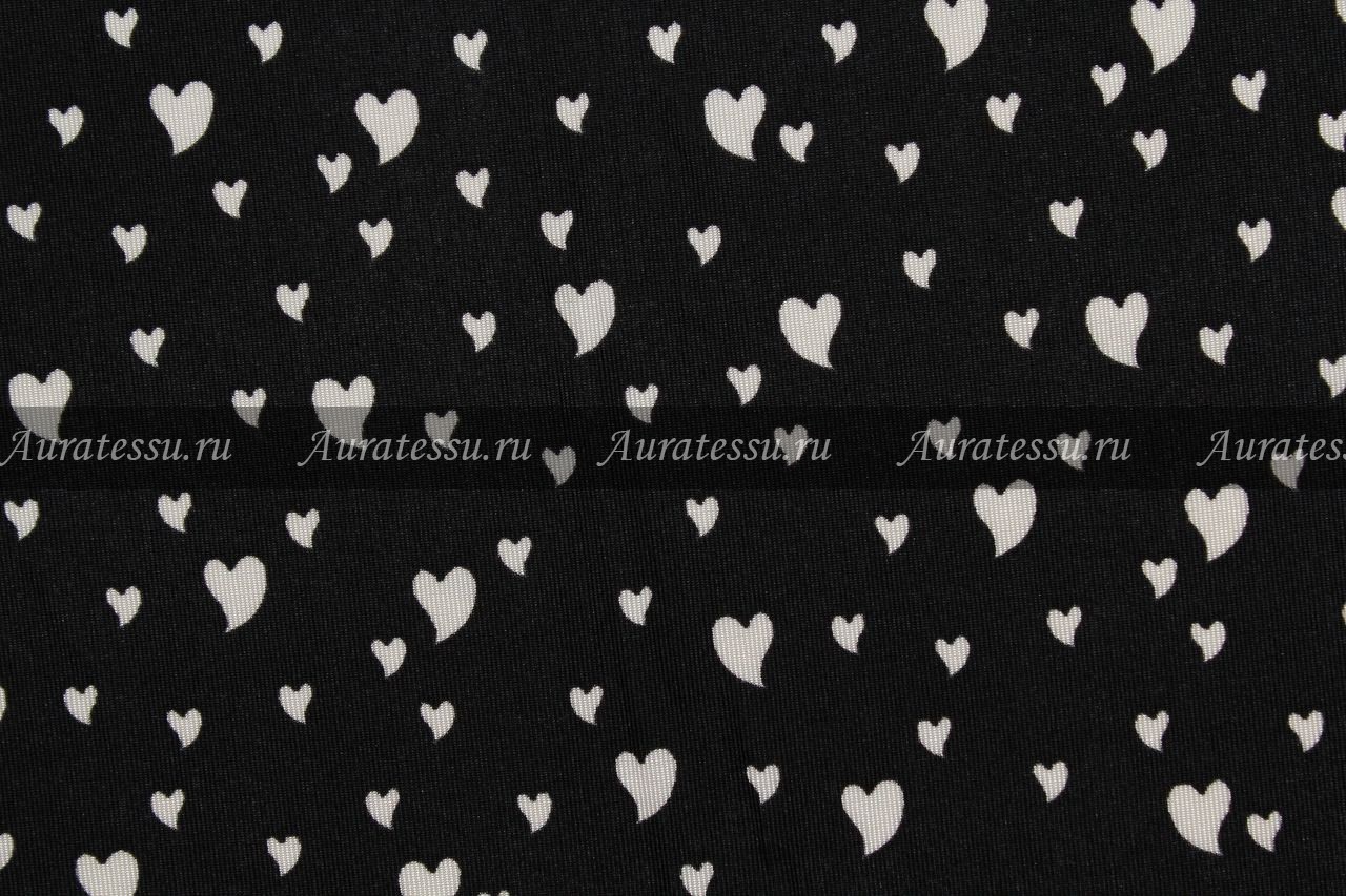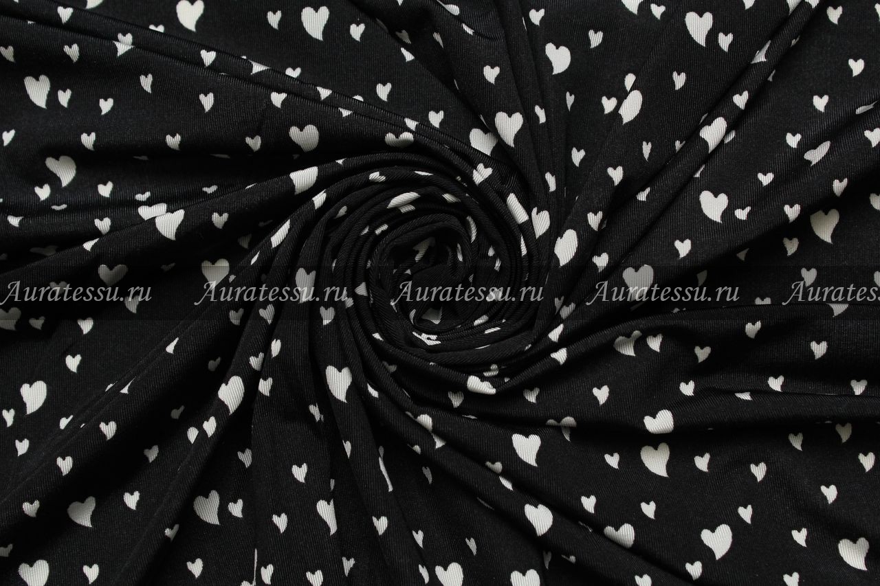 Трикотаж-стрейч Moschino белые сердечки на чёрном 260 г/мп