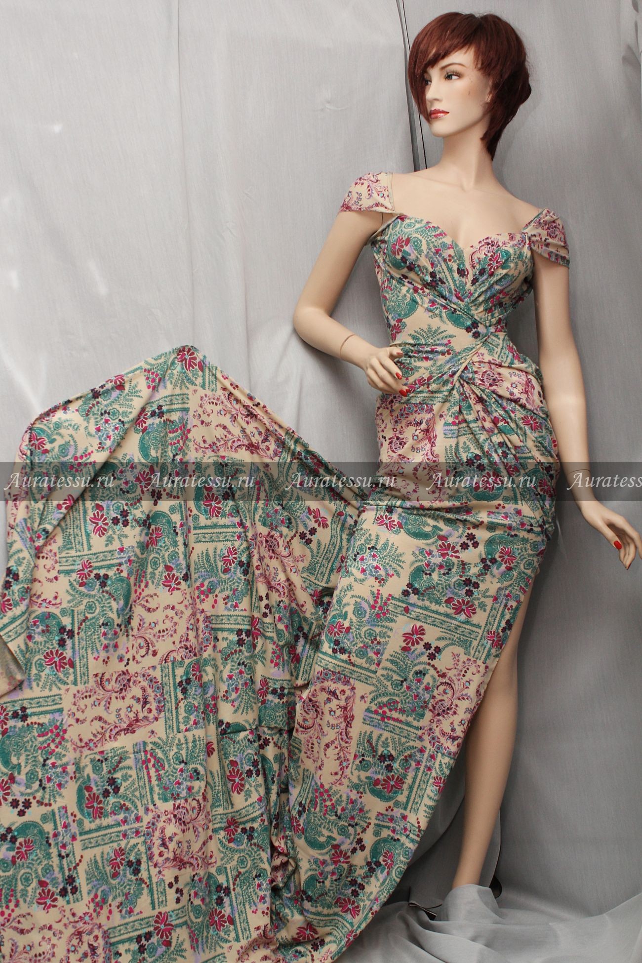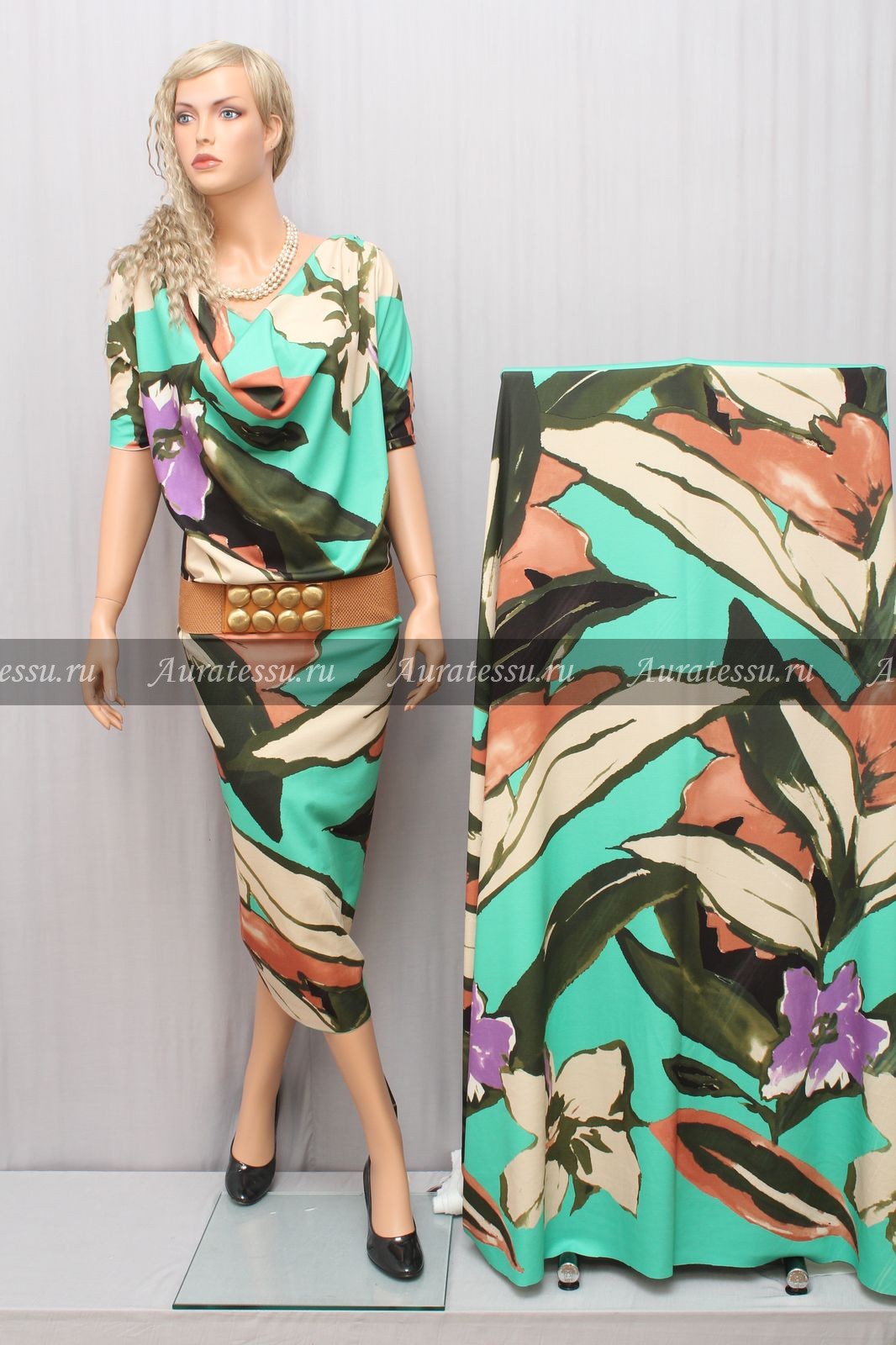 Трикотажные ткани из ацетата, вискозы, хлопка, акрила, полимида, нейлона, эластана, представлены производителями из Италии, Франции, Испании, Германии и Кореи. Продажа всех имеющихся тканей из трикотажа возможна через интернет магазин от 1 метра, в магазинах СПБ- от 10 см. Эластичный трикотаж с рисунком подходит для парео, платьев, юбок, туник, блузок. Если это трикотаж с купоном- четыре шва, и изделие готово !!! Обращайте внимание на размер купона- его длину и ширину.