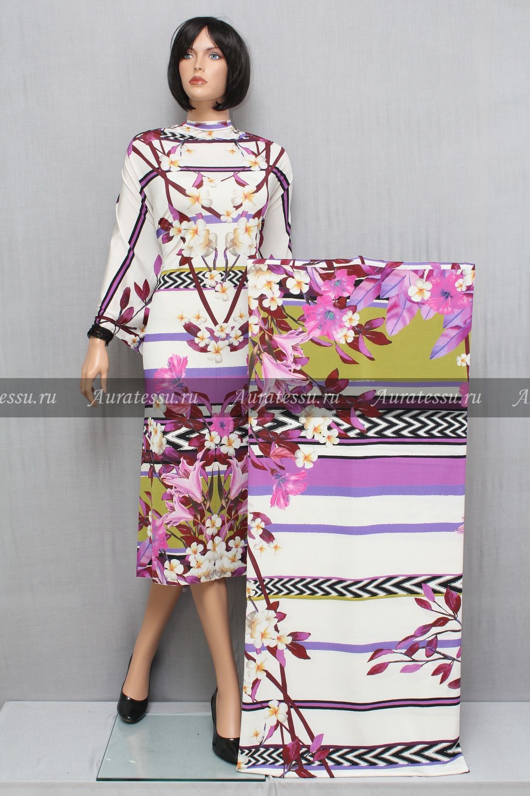 Трикотажные ткани из ацетата, вискозы, хлопка, акрила, полимида, нейлона, эластана, представлены производителями из Италии, Франции, Испании, Германии и Кореи. Продажа всех имеющихся тканей из трикотажа возможна через интернет магазин от 1 метра, в магазинах СПБ- от 10 см. Эластичный трикотаж с рисунком подходит для парео, платьев, юбок, туник, блузок. Если это трикотаж с купоном- четыре шва, и изделие готово !!! Обращайте внимание на размер купона- его длину и ширину.