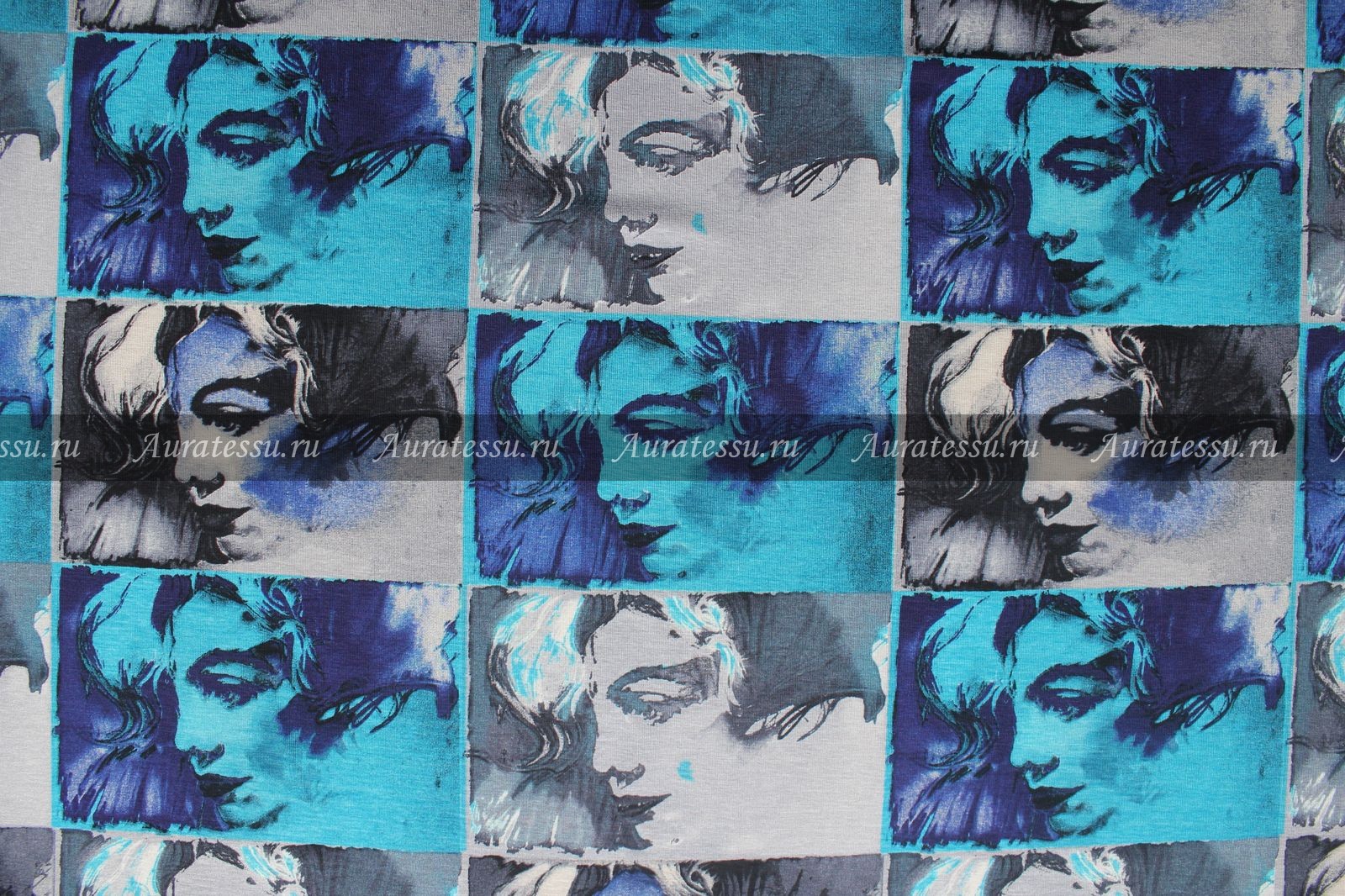 Дополнительная информация:Трикотаж средней плотности с принтом в виде фотографий Мерилин Монро размером 15x9 см в бирюзовых, темно-васильковых и серых тонах. Хорошо драпируется, пластичный и упругий. Подходит для пошива облегающей одежды. Рекомендации по уходуДжерси, трикотаж шерстяной, полушерстяной: Стирать трикотаж из шерсти рекомендуется в воде комнатной температуры (до 30°С) с использованием качественного жидкого моющего средства - для деликатных тканей. Режим стирки – для деликатных тканей или шерсть, без отжима, иначе изделие сваляется и будет валенок. Лучше отжимать трикотаж вручную, закатав изделие в махровое полотенце и сжимающими движениями, удалив излишнюю влагу. Сушить трикотажные изделия нужно наизнанку , в расправленном виде на подложке, вдали от обогревательных приборов, избегая прямого попадания солнечных лучей. Помните, что чем деликатнее ткань и ее структура, тем более деликатным должен быть уход за изделием.