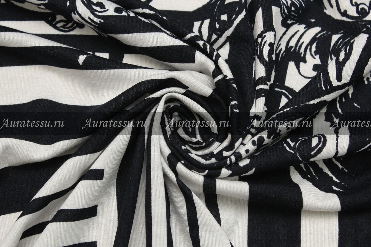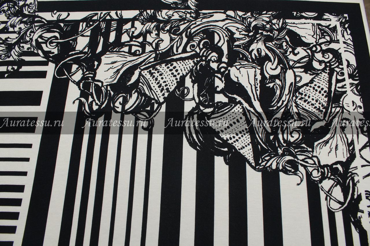 Купон трикотаж-стрейч тёмно-синий вензельный узор