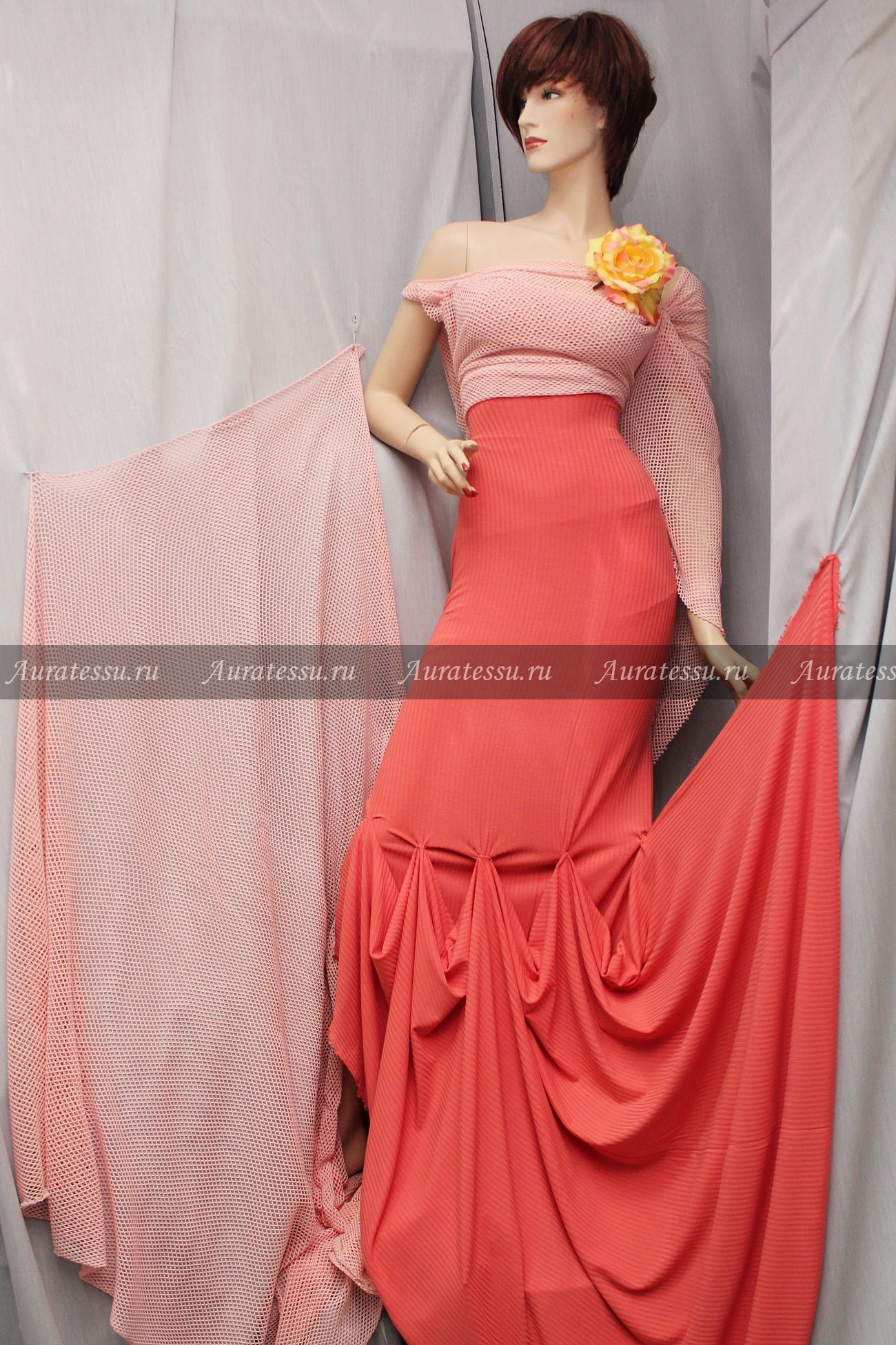 Сетчатое трикотажное полотно можно использовать в качестве основы для повседневного, вечернего и свадебного платья. Его можно использовать как основу для отделки красивых фактурных тканей со страницы Ткани для вечерней одежды.