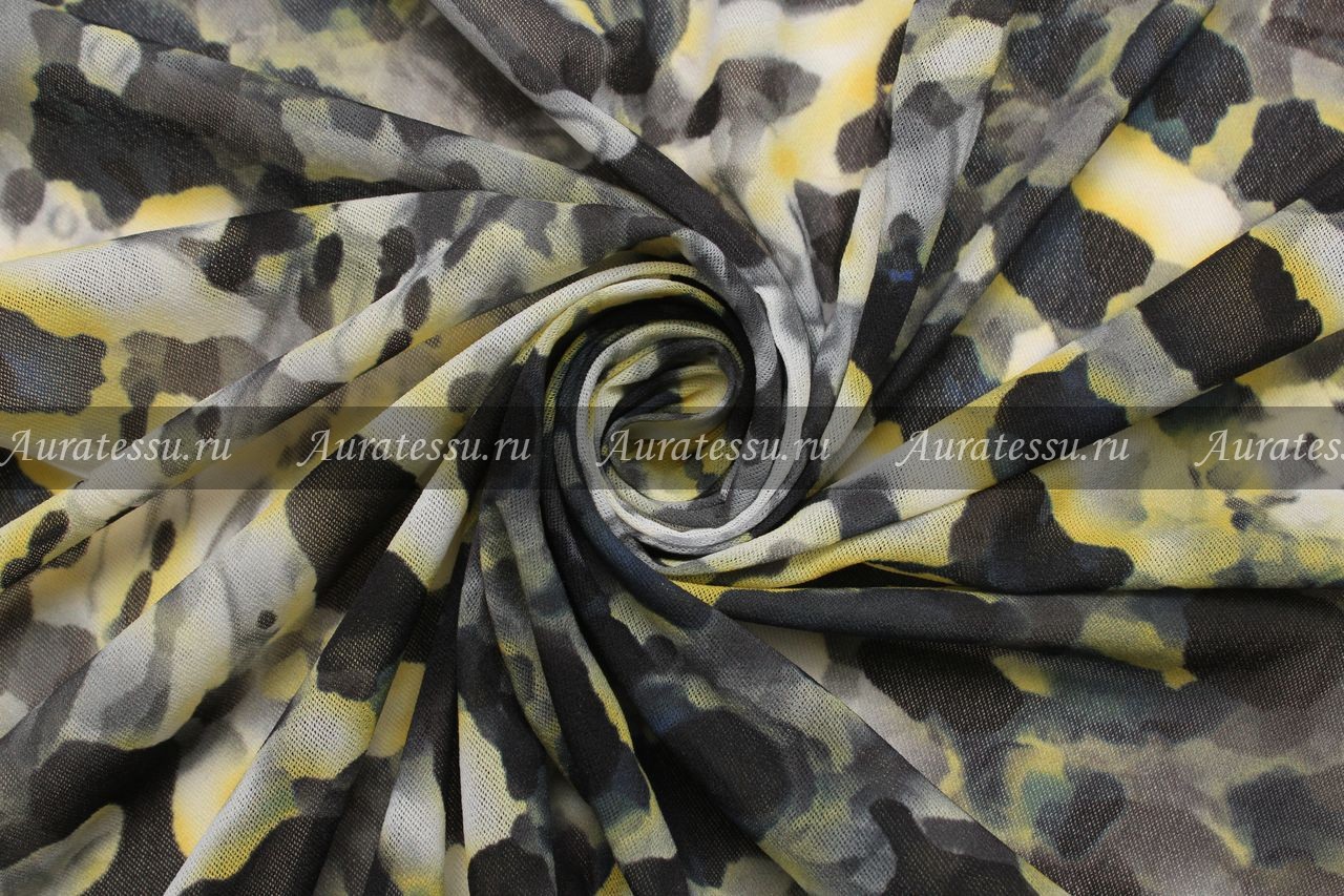 Дополнительная информация:Тонкий сетчатый трикотаж с размытым абстрактным пятнистым узором. Цветовая гамма рисунка в бело-жёлтых, чёрно-коричневых, серо-синих оттенках. Трикотаж очень эластичный, мягко драпируется. Подходит для пошива трикотажной одежды разнообразных силуэтов. Рекомендации по уходуДжерси, трикотаж шерстяной, полушерстяной: Стирать трикотаж из шерсти рекомендуется в воде комнатной температуры (до 30°С) с использованием качественного жидкого моющего средства - для деликатных тканей. Режим стирки – для деликатных тканей или шерсть, без отжима, иначе изделие сваляется и будет валенок. Лучше отжимать трикотаж вручную, закатав изделие в махровое полотенце и сжимающими движениями, удалив излишнюю влагу. Сушить трикотажные изделия нужно наизнанку , в расправленном виде на подложке, вдали от обогревательных приборов, избегая прямого попадания солнечных лучей. Помните, что чем деликатнее ткань и ее структура, тем более деликатным должен быть уход за изделием.