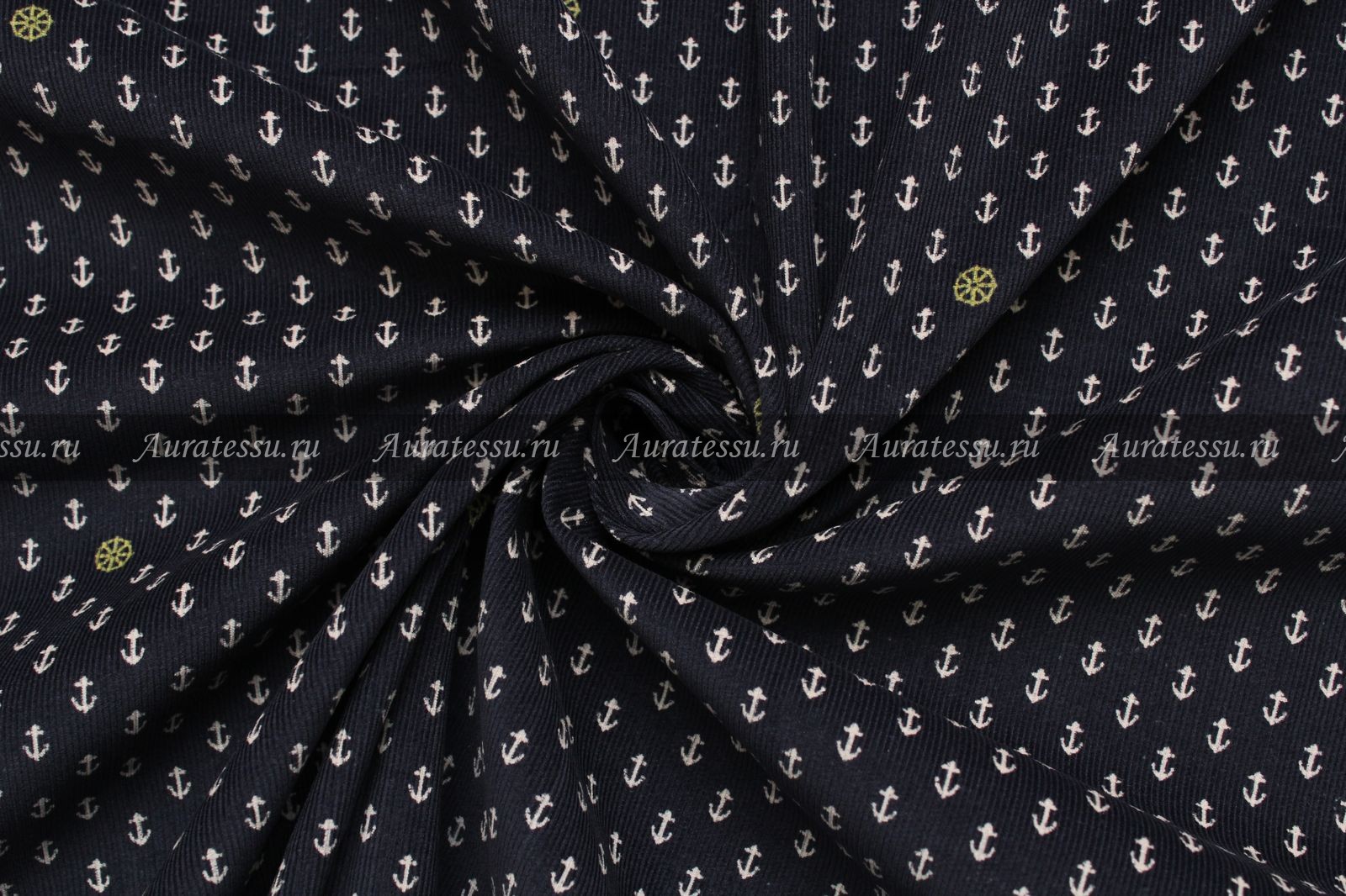 Дополнительная информация:Достаточно тонкий 260 г/м микровельвет тёмно-синего цвета с направленным мелким рисунком на морскую тему. Якоря кремового цвета размером около 7 мм. плотно и равномерно расположены по всему полю ткани и между ними достаточно редко в рисунок включены штурвалы фисташкового цвета. Размер штурвала около 8 мм. Полотно мягкое и пластичное. Отлично подходит для пошива рубашек, сарафанов, разнообразных отделок. Рекомендации по уходуВельвет, велюр синтетический с эластаном и без: Синтетический вельвет, велюр в том числе и на трикотажной основе стирать просто и можно не гладить, если достаточно места, чтобы высушить его в расправленном виде. Можно стирать в машинке вывернув наизнанку с обычным стиральным порошком для цветного белья при 30-40°С без отжима или с легким отжимом. Если потребуется погладить, то лучше на весу утюгом с вертикальным отпаривателем или гладить на махровом полотенце, сложенном в 2-3 раза.