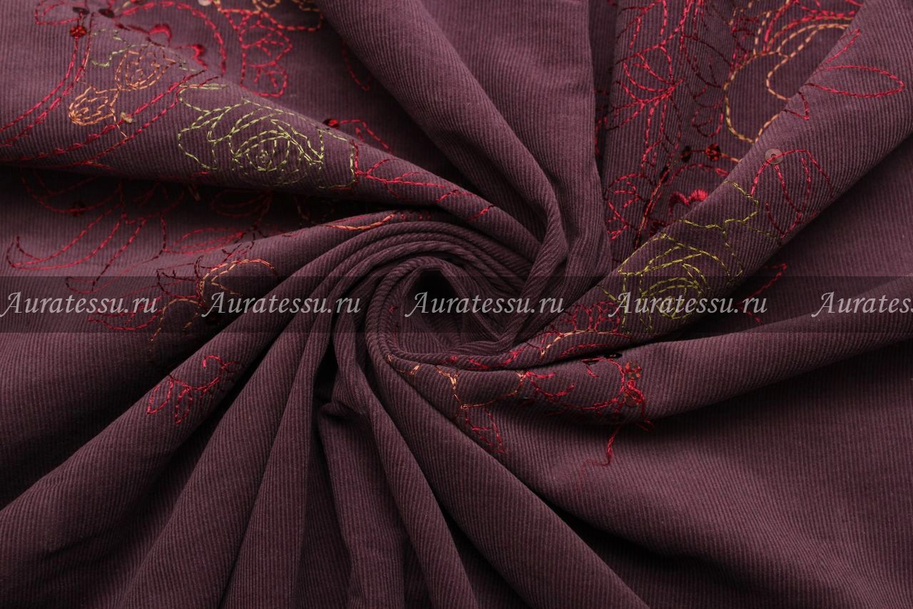 Купон вельвет сиренево-лиловый с вышивкой и пайетками