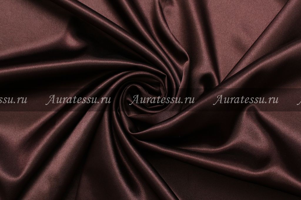 Средней плотности глянцевая атласная ткань шоколадного насыщенного цвета, с холодным блеском, красиво струится, мало мнётся. Цвет атласа сам по себе очень красивый и самодостаточный, будет очень эффектно смотреться на любом изделии. Наличие эластана обеспечивает хорошую посадку по фигуре. Подходит для нарядной и праздничной одежды.