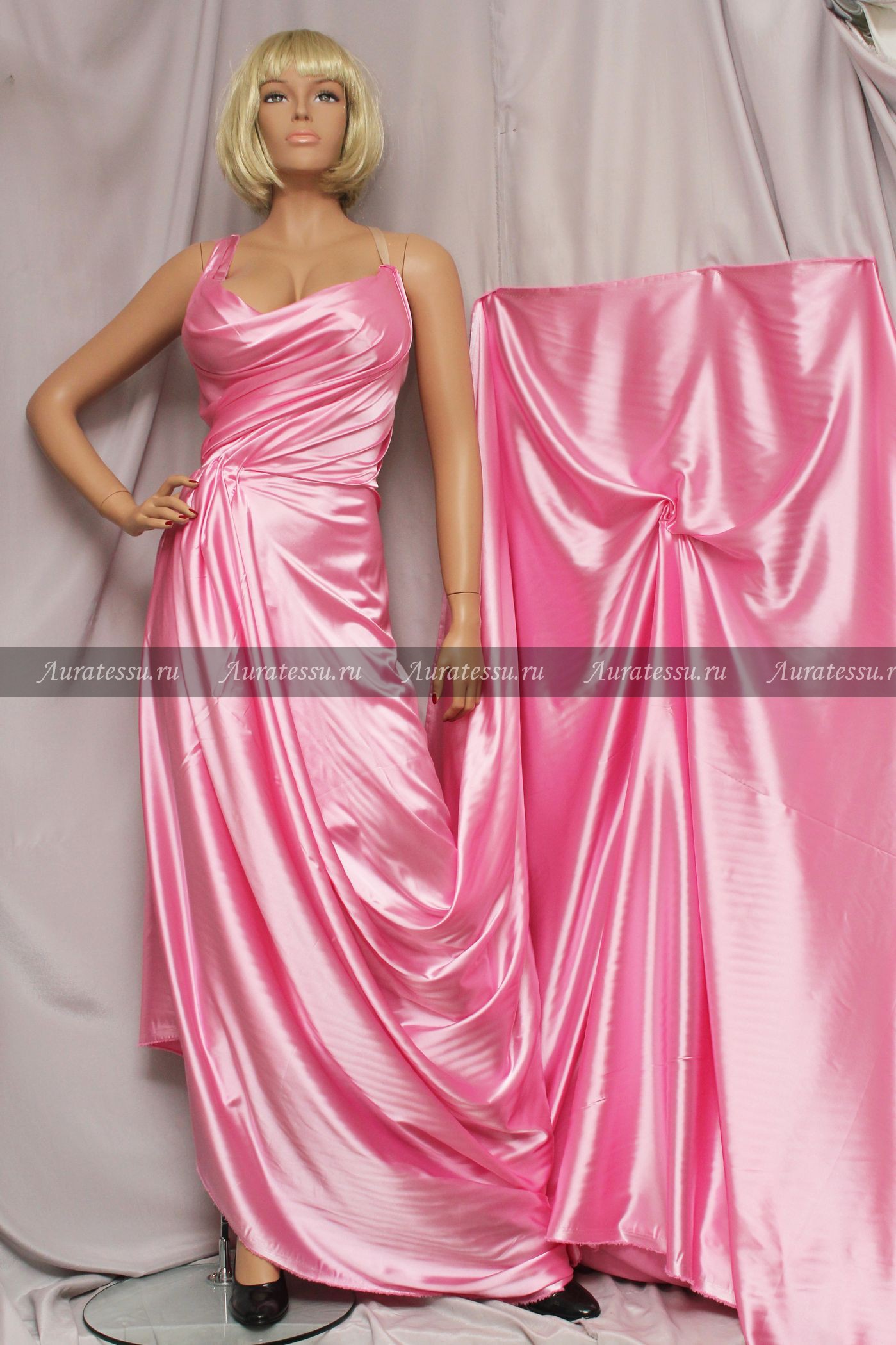 - Атлас-стрейч тонкий, ярко-светло-розовый