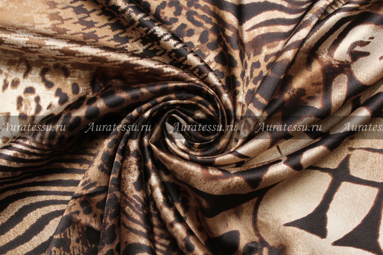 Дополнительная информация:Тонкий, не прозрачный, эластичный синтетический атлас в бежево-коричневой гамме с узором составляющим микс из ломанной клетки, полос, леопарда. Ткань глянцевая, пластичная, практически не мнётся. Подходит для пошива плательной и блузочной одежды разнообразных моделей и силуэтов. Рекомендации по уходуРекомендации по уходу: синтетический атлас-стрейч