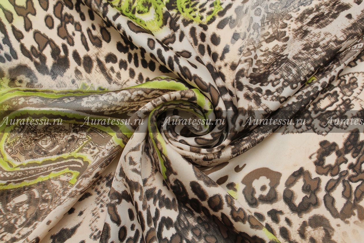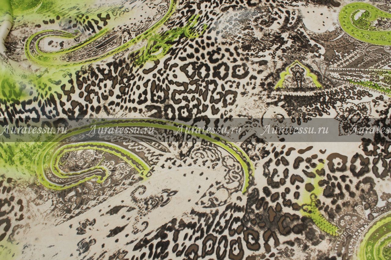 - Атлас салатово-серо-коричнево-желтый леопард на вензельном рисунке