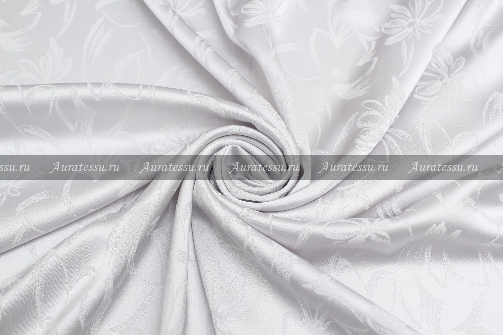 Атлас жаккард плательный жемчужного цвета с цветами 200г/мп