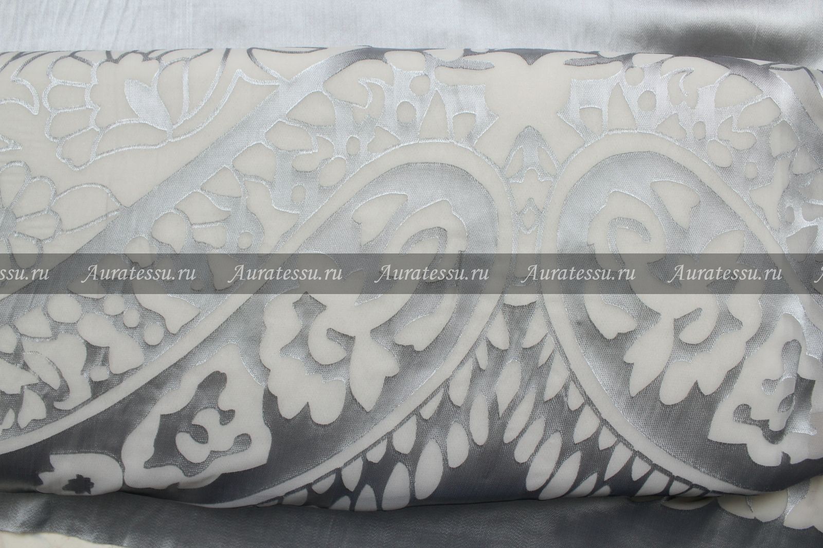 - Купон-атлас деворе серый с узором пейсли по кайме