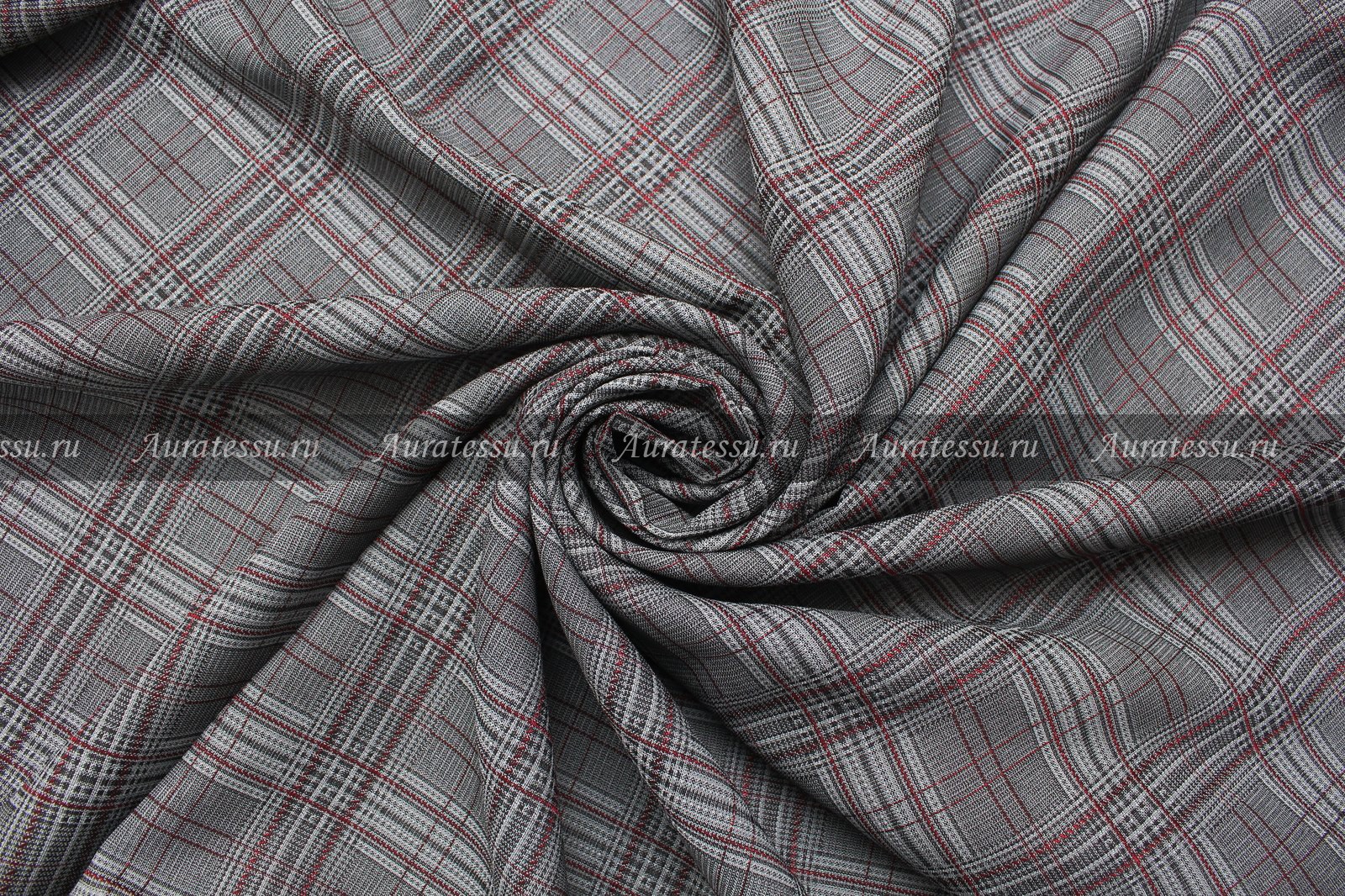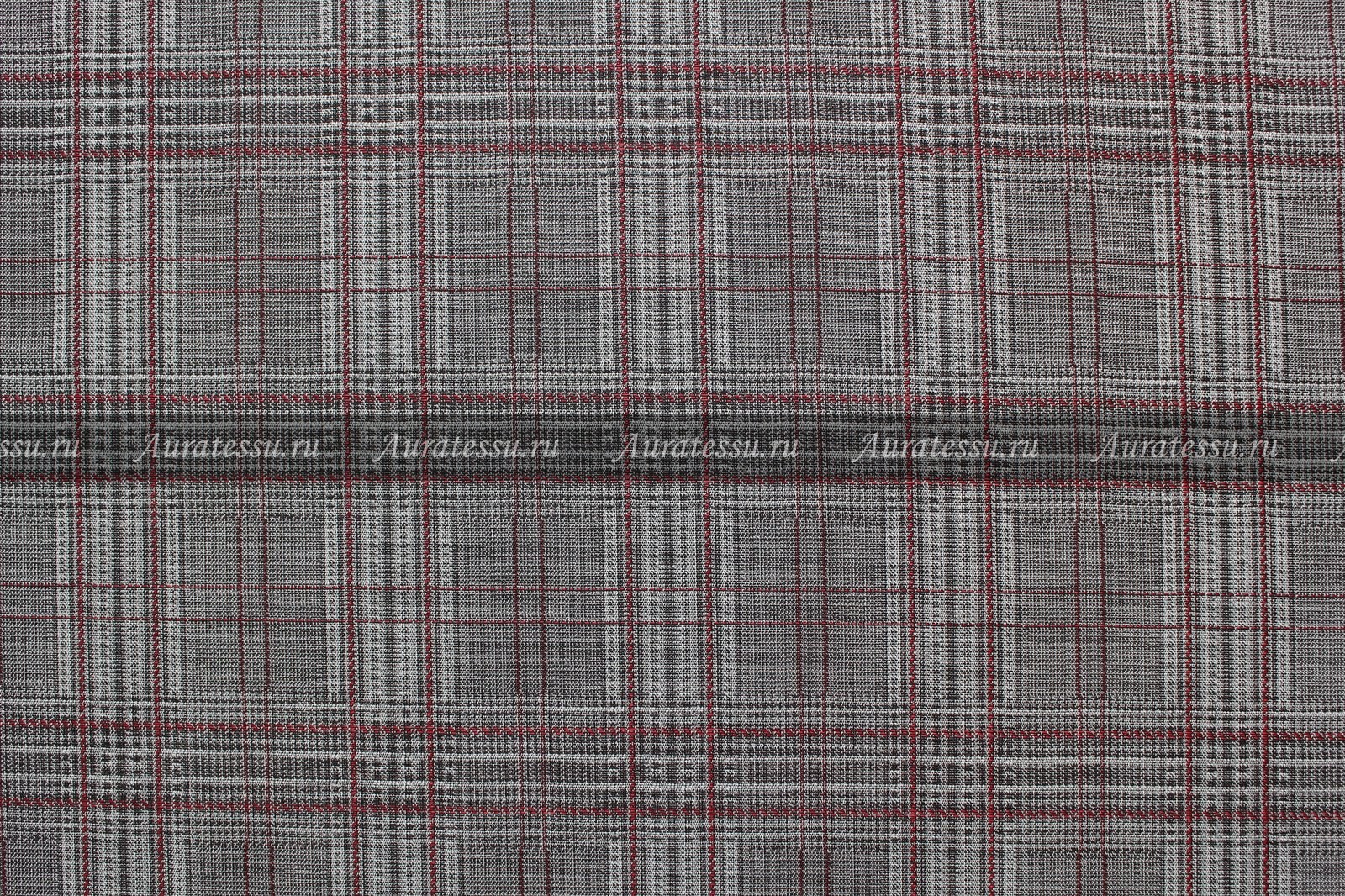 - Жаккард костюмный светло-серая с красным клетка