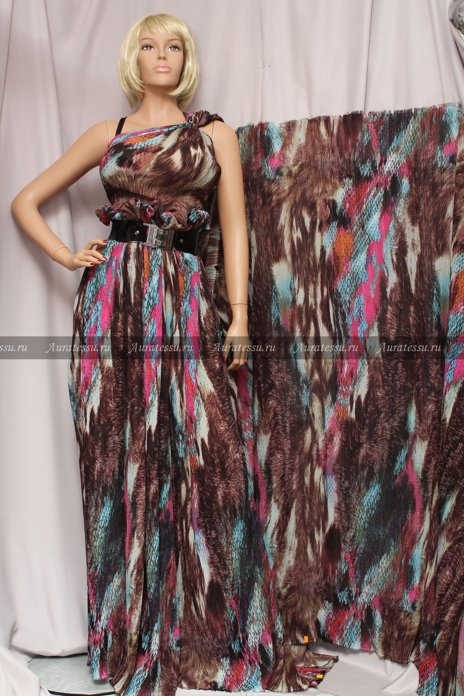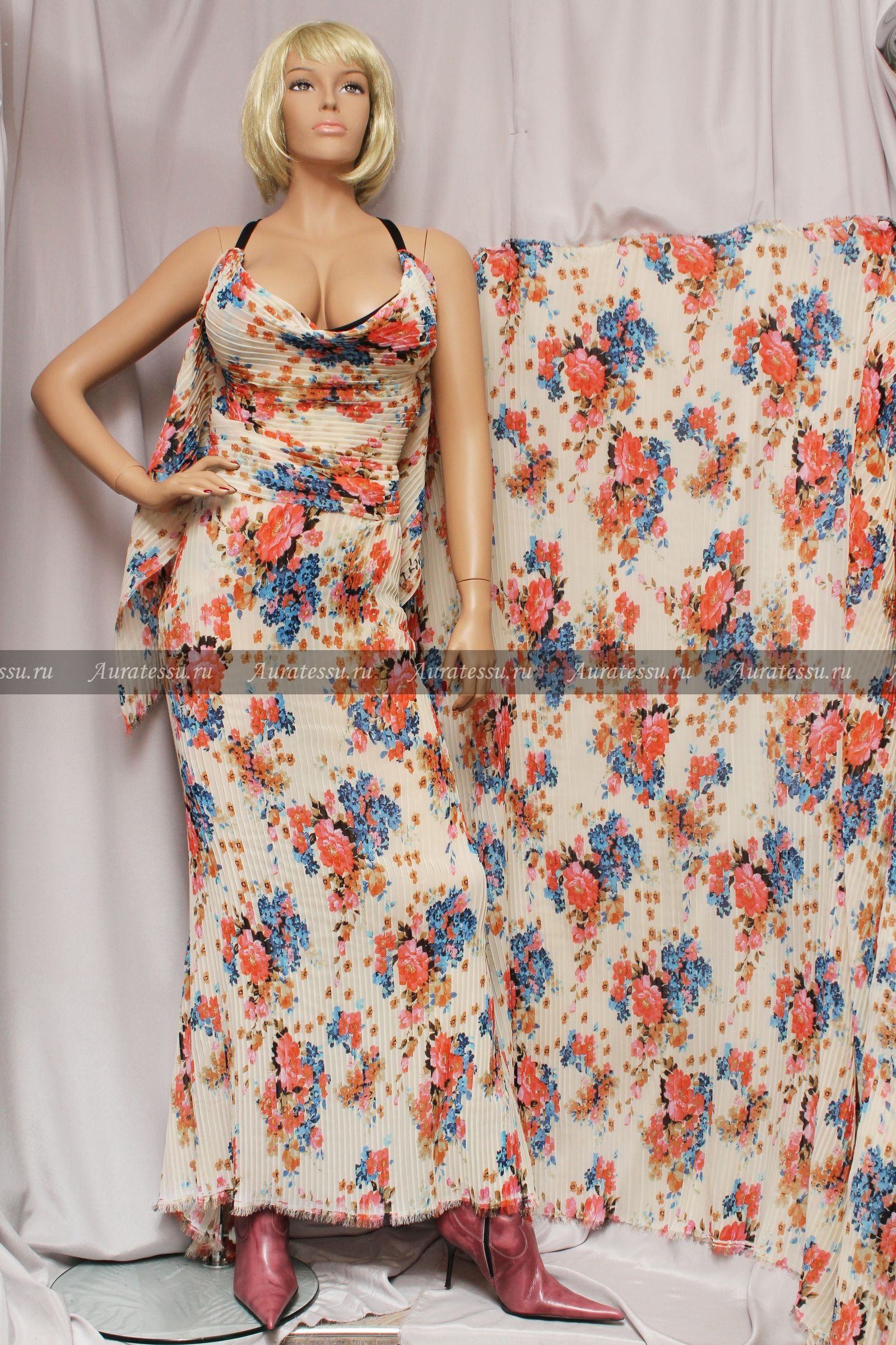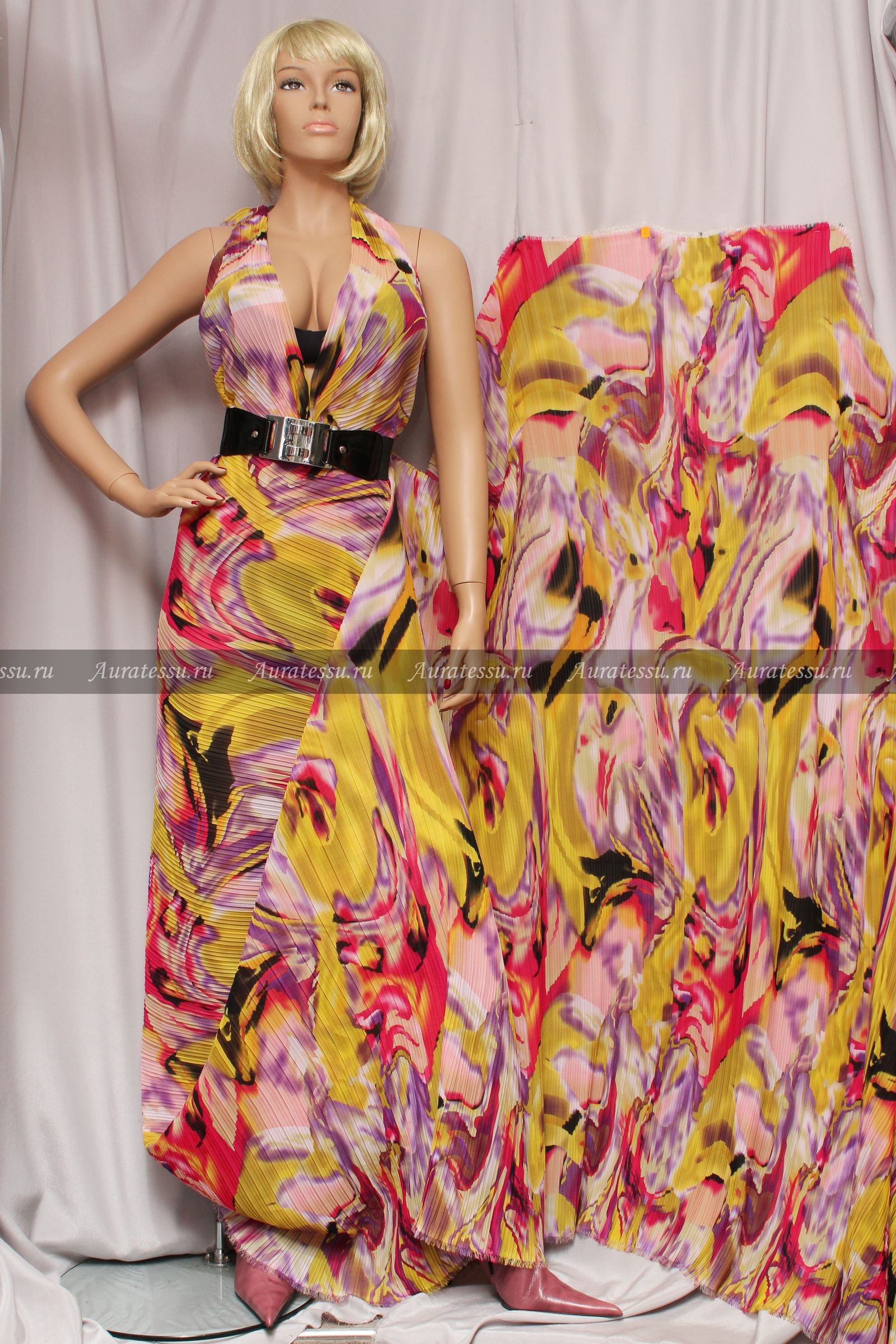 Жоржет или шифон плиссе с абстрактным или цветочным рисунком подходит для платьев, юбок и отделки изделий. Все синтетические ткани плиссе Корейского производства просты в уходе и хорошо удерживают складку. Можно без опасения стирать в машинке с легким отжимом.