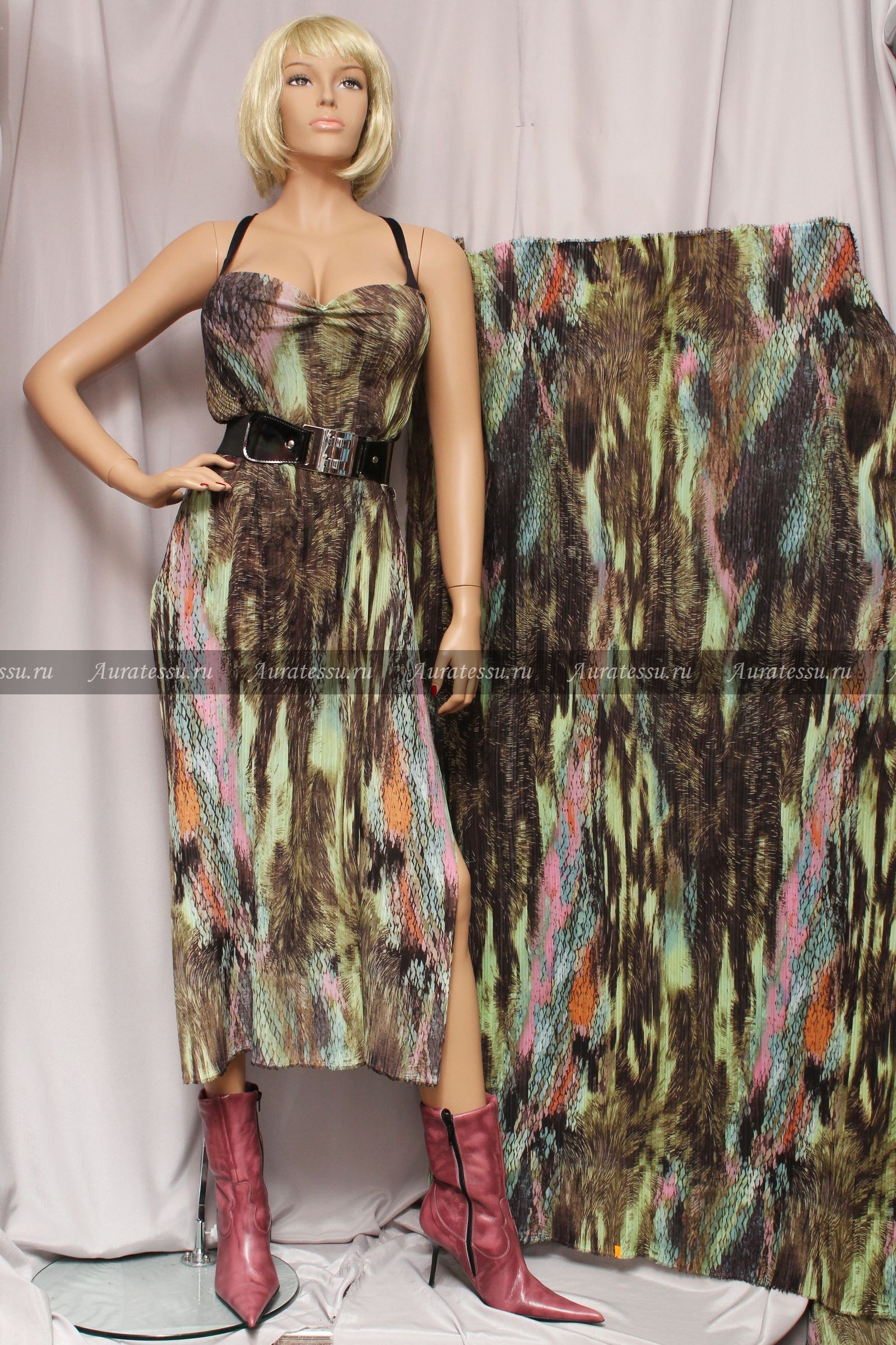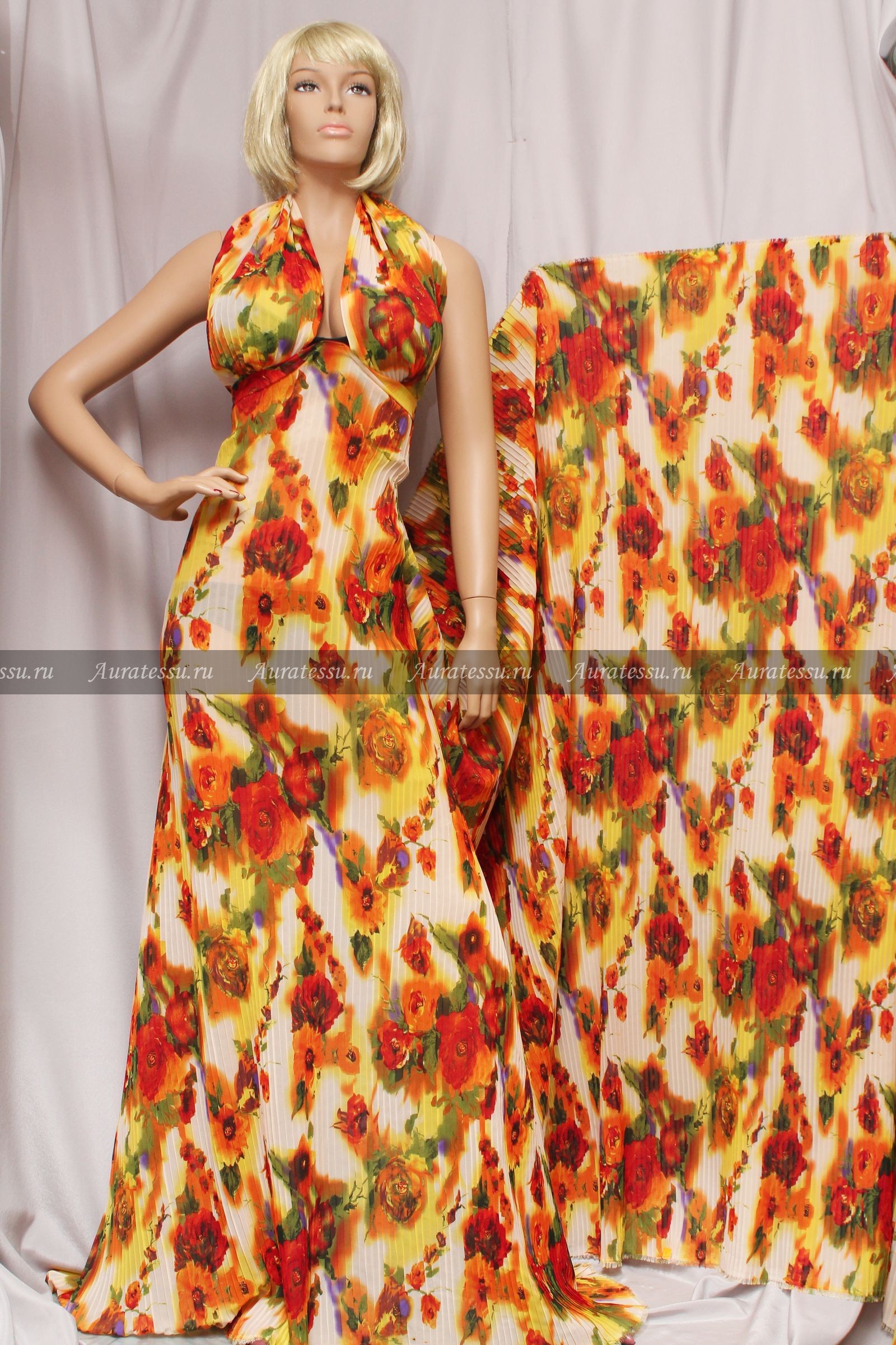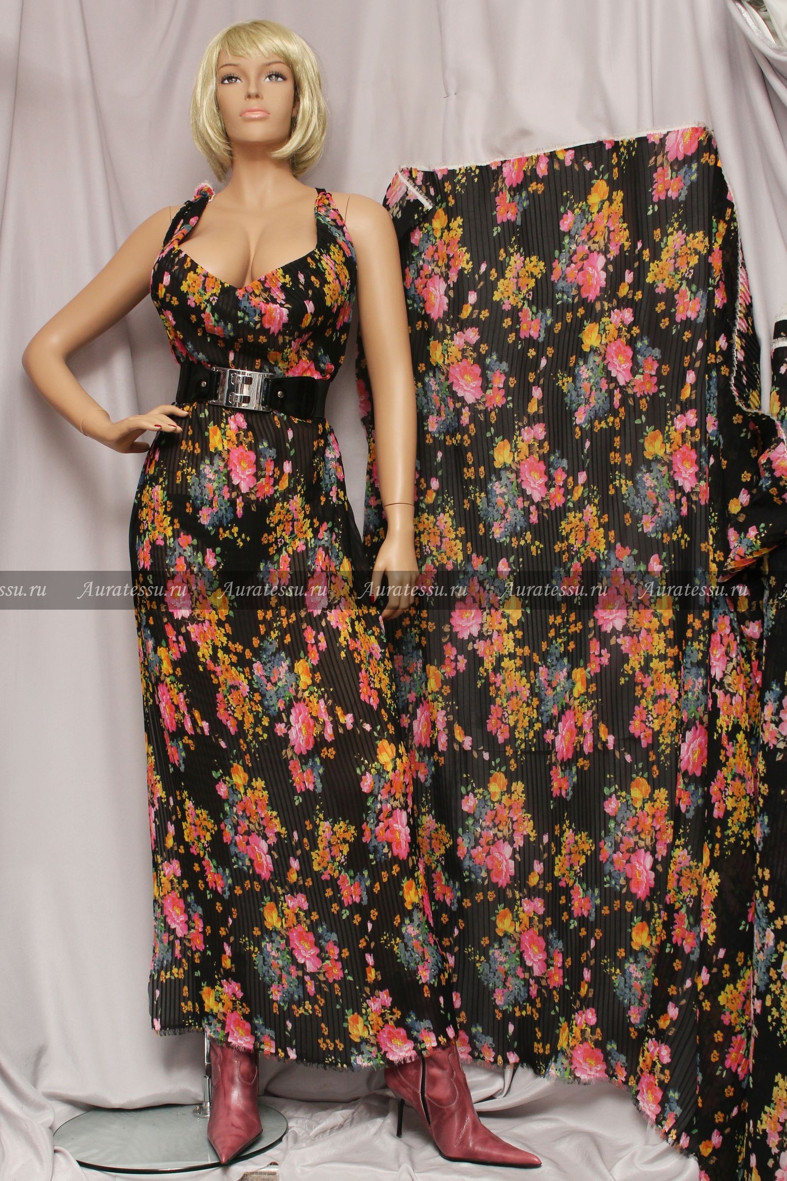 Жоржет или шифон плиссе с абстрактным или цветочным рисунком подходит для платьев, юбок и отделки изделий. Все синтетические ткани плиссе Корейского производства просты в уходе и хорошо удерживают складку. Можно без опасения стирать в машинке с легким отжимом.