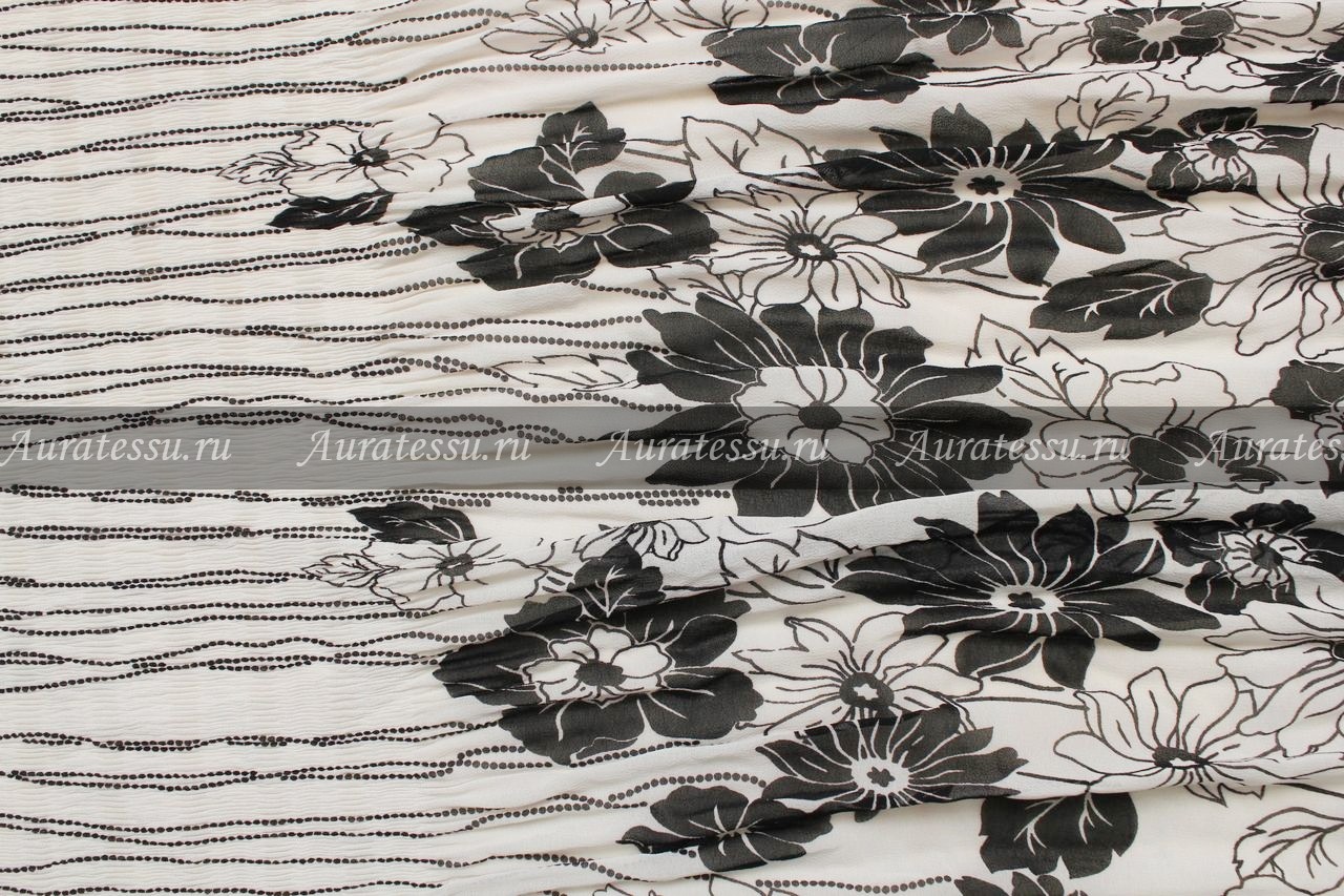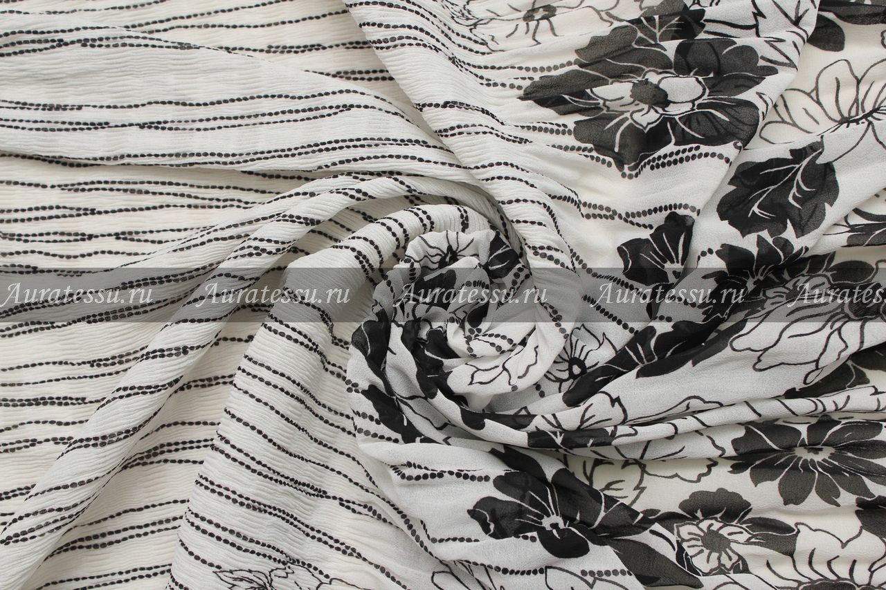 - Жоржет-стрейч кайма (плиссе по центру) чёрно-белый