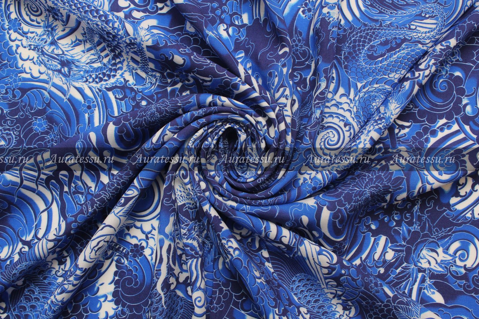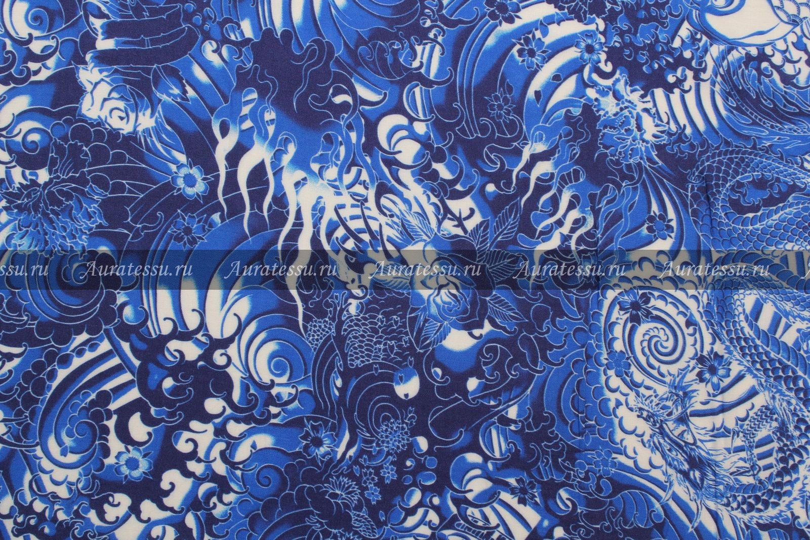 Дополнительная информация:Тонкая, матовая, не прозрачная ткань с густым сине-белым узором. Полотно эластичное, мало сминаемое, отлично драпируется. В рисунке два оттенка синего и белый цвет. Узор густой, не крупный с изображением змеи, волн, цветов, якорей, морских обитателей и логотипа дизайнера. Подходит для пошива лёгкой блузочно-плательной одежды разнообразных силуэтов. Рекомендации по уходуРекомендации по уходу: синтетический атлас-стрейч