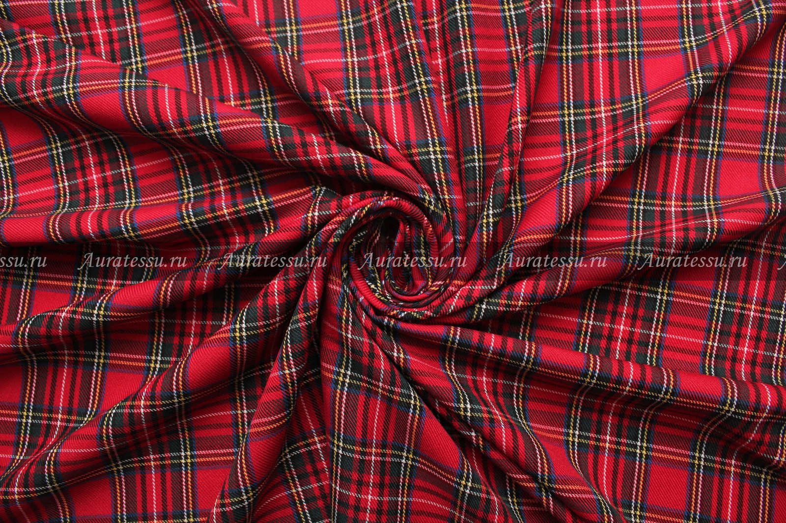 - Ткань костюмная «шотландка» клетка на вишнёво-красном фоне