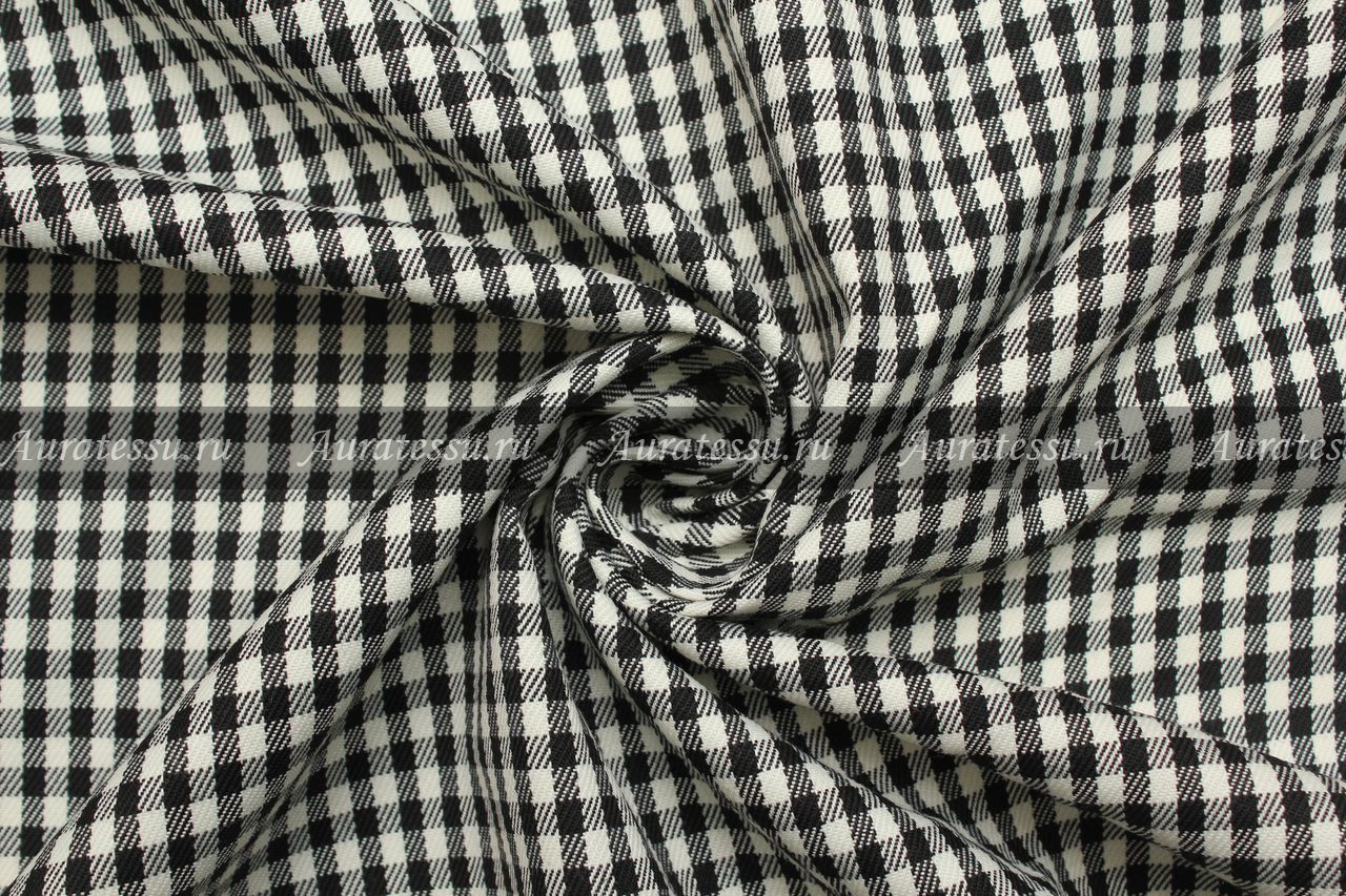 Дополнительная информация:Костюмная ткань средней плотности, ближе к плотной диагонального переплетения в мелкий рисунок в клеточку. Цветовая гамма узора: чёрный и бело-молочный цвет. Размер клетки 5x4 мм. Полотно упругое, держит форму. Подходит для пошива костюмно-плательной одежды классических и объёмных силуэтов. Рекомендации по уходуРекомендации по уходу: синтетический атлас-стрейч