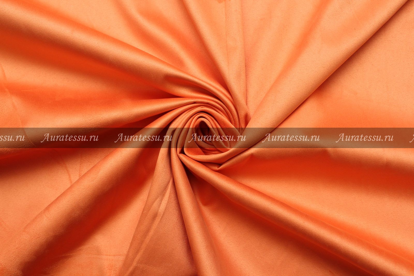 Искусственная замша средней плотности нежного морковного цвета с лёгким оранжевым оттенком. Замша бархатистая, ворс приглажен и имеет направление. Основа ткани (изнаночная сторона) глянцевый сатин насыщенного оранжевого цвета, может быть использован в качестве отделки на лицевой поверхности изделия. Полотно пластичное и упругое, держит форму. Подходит для пошива курток и пальто, жилетов и костюмного ассортимента, а так же для разного рода отделок и украшения готовой одежды.