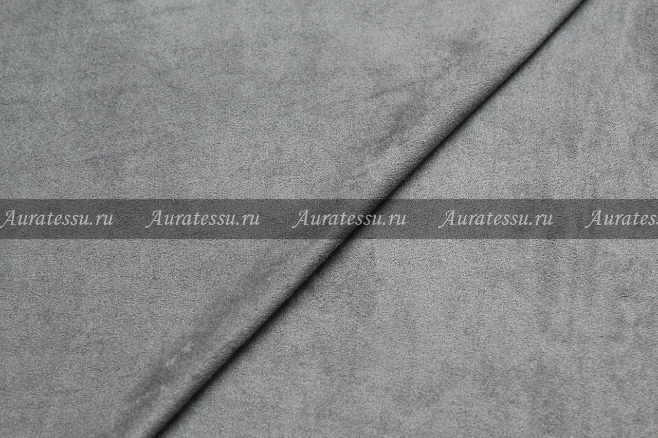 Трикотажная тонкая эластичная замша, серого цвета, тонкая, очень мягкая, струящаяся, почти не мнется. С лицевой стороны - не длинный ворс, бархатный на ощупь. С изнанки трикотажная вязка. Подходит для шитья плательно-костюмной и спортивной одежды. Хорошо переносит машинную стирку, но отжимать лучше вручную или на очень малых оборотах.