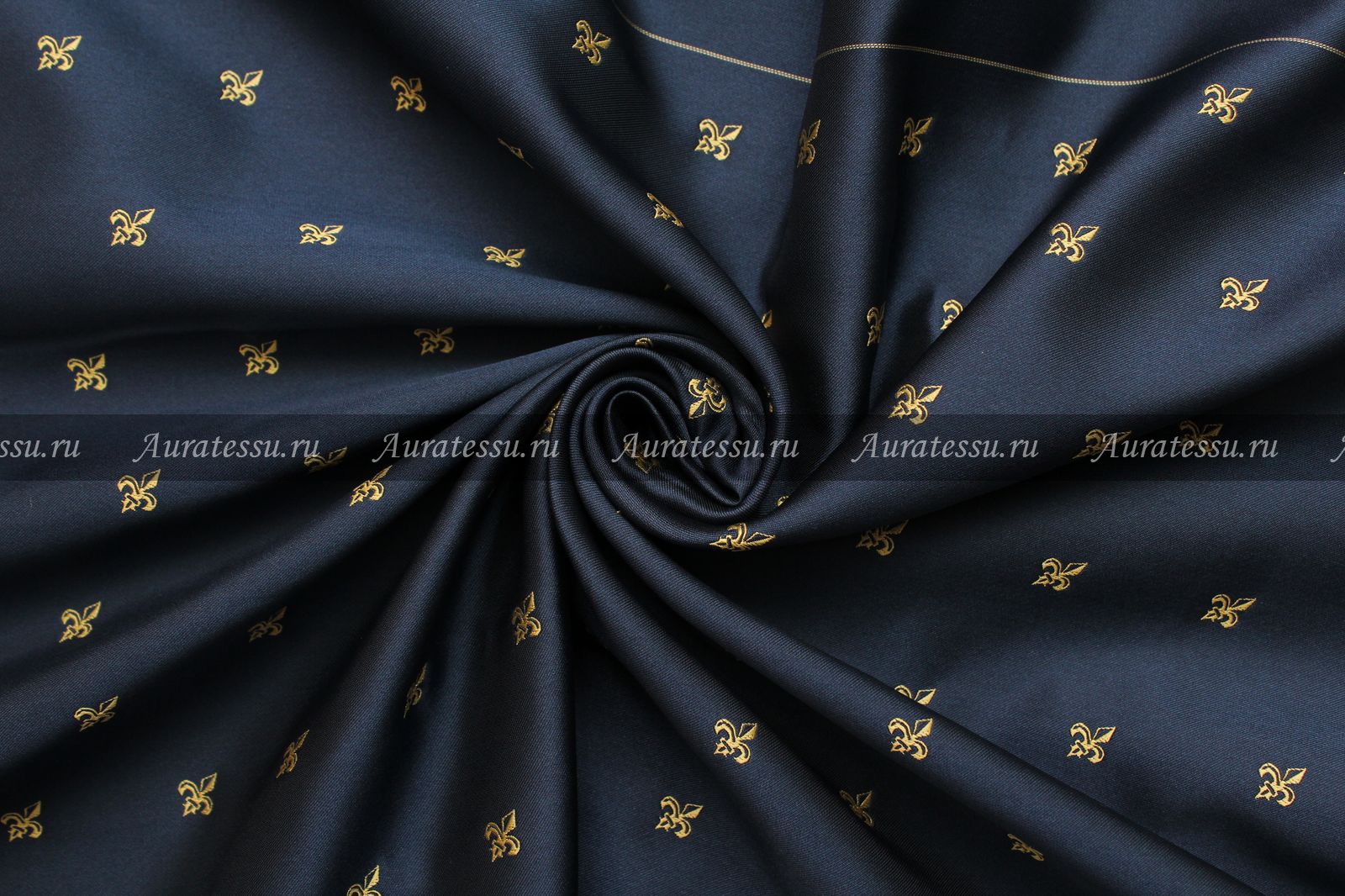 Дополнительная информация:Жаккардовый купон, тонкий, пластичный, упругий, тёмно-синего цвета с золотисто-жёлтыми «символическими лилиями» и гербами расположенными по обеим сторонам купона, выполнены в ярко-синей, светло-серой и золотисто-жёлтой гамме. Ткань хорошо держит форму, пластичная, предназначена для пошива галстуков, но так же может быть использована для жилетов, подкладки в готовые изделия и для интерьерных решений. Рекомендации по уходуЖаккардовые ткани с составом 100% полиамид: 100% полиамид или полиамид с эластаном (в том числе полиамид более 50%+ ацетат): плательная, костюмная группа. Ткани жаккардовых переплетений, в состав которых входит в основном полиамид с добавлением вискозы, ацетата и эластана можно стирать в машине при температуре до 30°С в щадящем режиме. Можно отжимать в барабане, но всегда лучше на оборотах до 500. Синтетические ткани практически не дают усадку и не мнутся. Для сушки их нужно подвешивать лучше наизнанку. Эти ткани сохнут быстро и иногда не нуждаются в утюжке. Если вы хотите их отутюжить, то делайте это с изнаночной стороны с паром. Гладить на "шелке", можно слегка сбрызнуть. Жаккарды, с шёлковыми волокнами: Рекомендации производителя - профессиональная химчистка. При таком составе, мы тоже не рекомендуем стирать ткань, но вы можете попробовать на кусочке, оставшемся от кроя: ручная стирка, вода до 30°С, не замачивать, мягкие моющие средства для шёлка, стирать только загрязненные места, отжим в полотенце, сушка в горизонтальном расправленном виде изнанкой вверх, гладить на шелке. Вкусочек побольше, чтобы было видно, как поведёт себя ткань.