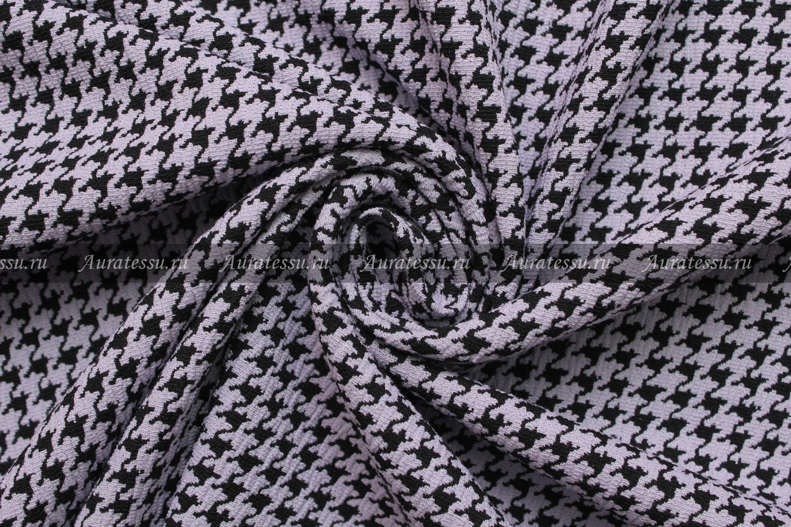 Жаккард-стрейч Pied-de-Poule чёрно-сиреневая гусиная лапка