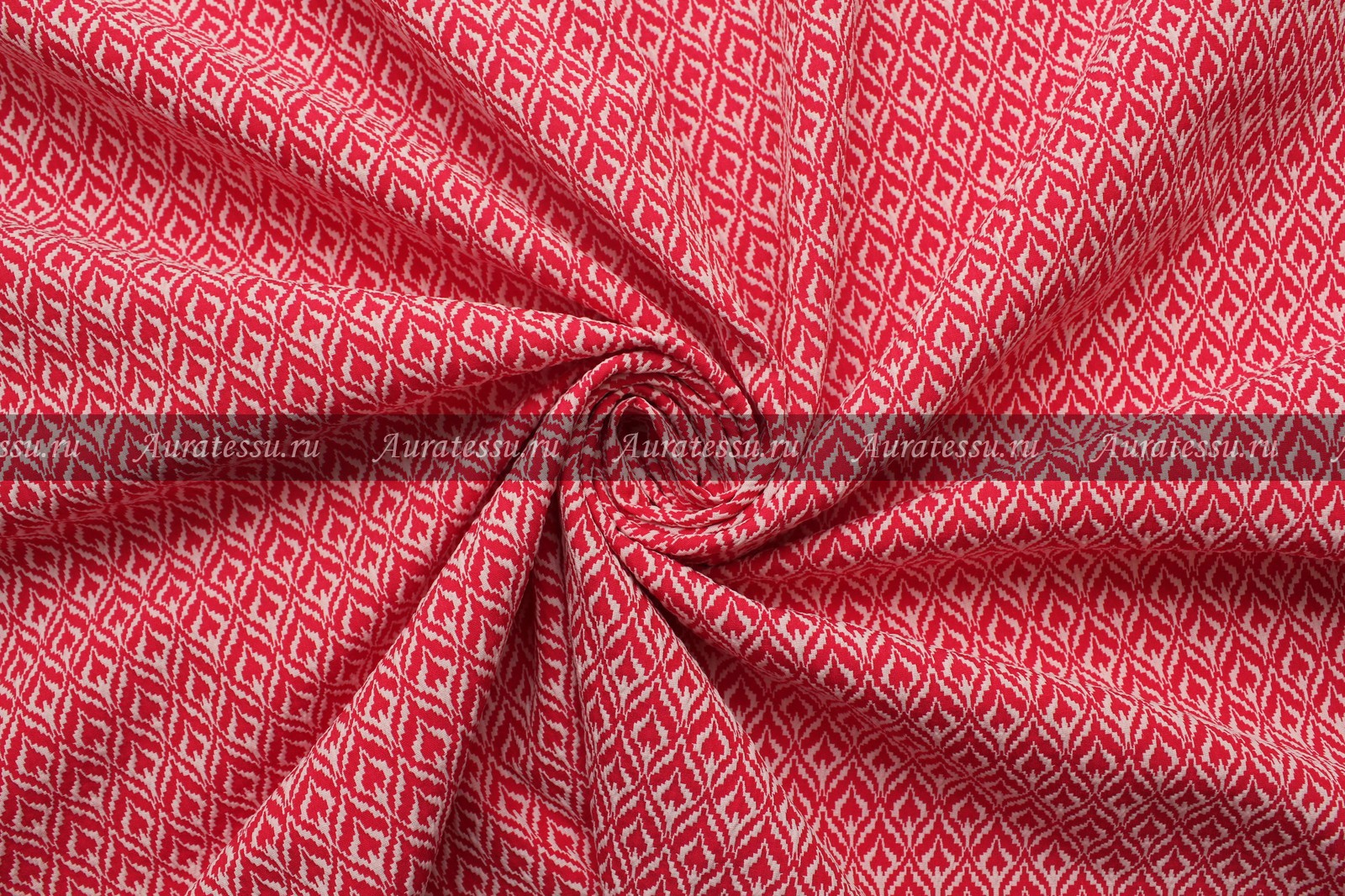 Дополнительная информация:Двухслойное, слегка сжатое жаккардовое полотно с восточным мелким орнаментом. Цветовая гамма в молочно-белом и малиново-красном тоне. Рисунок в виде ломанных ромбовидных узоров на восточную тему. Полотно упругое, держит форму, при желании изнаночная сторона может быть отделкой. Подходит для пошива плательной и костюмной одежды разнообразных силуэтов. Рекомендации по уходуЖаккардовые ткани с составом 100% полиамид: 100% полиамид или полиамид с эластаном (в том числе полиамид более 50%+ ацетат): плательная, костюмная группа. Ткани жаккардовых переплетений, в состав которых входит в основном полиамид с добавлением вискозы, ацетата и эластана можно стирать в машине при температуре до 30°С в щадящем режиме. Можно отжимать в барабане, но всегда лучше на оборотах до 500. Синтетические ткани практически не дают усадку и не мнутся. Для сушки их нужно подвешивать лучше наизнанку. Эти ткани сохнут быстро и иногда не нуждаются в утюжке. Если вы хотите их отутюжить, то делайте это с изнаночной стороны с паром. Гладить на "шелке", можно слегка сбрызнуть. Жаккарды, с шёлковыми волокнами: Рекомендации производителя - профессиональная химчистка. При таком составе, мы тоже не рекомендуем стирать ткань, но вы можете попробовать на кусочке, оставшемся от кроя: ручная стирка, вода до 30°С, не замачивать, мягкие моющие средства для шёлка, стирать только загрязненные места, отжим в полотенце, сушка в горизонтальном расправленном виде изнанкой вверх, гладить на шелке. Вкусочек побольше, чтобы было видно, как поведёт себя ткань.