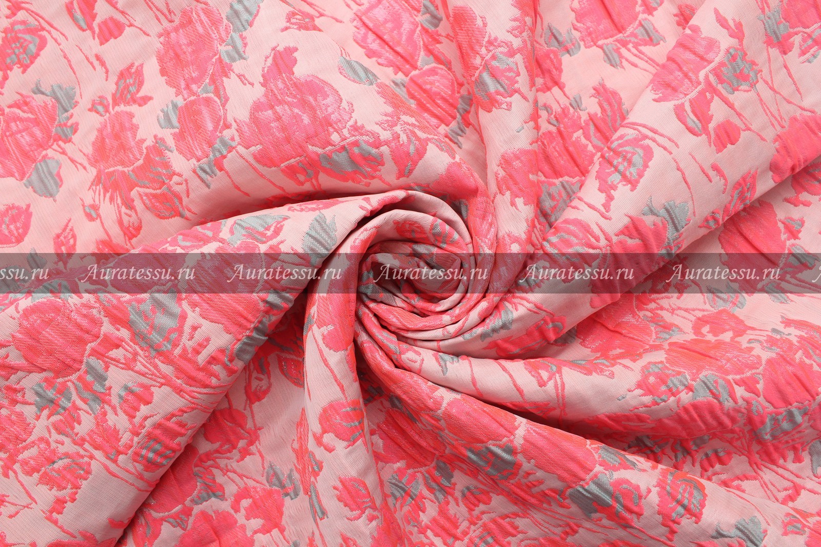 Дополнительная информация:Средней плотности, двухслойное клоке жаккард с объёмным растительным узором на нежно-розовом фоне. Рисунок в ярких кораллово-розовых с блеском и мятных тонах. Переплетение нитей основного фона достаточно рыхлое и присутствует раздвижка нитей. При желании ткань можно использовать на две стороны. Обратная сторона в бело-мятно-розовых тонах с ярким эффектом клоке. Полотно упругое, держит форму. Подходит для пошива костюмной и лёгкой летней, пальтовой, нарядной одежды не узких силуэтов. Рекомендации по уходуЖаккардовые ткани с составом 100% полиамид: 100% полиамид или полиамид с эластаном (в том числе полиамид более 50%+ ацетат): плательная, костюмная группа. Ткани жаккардовых переплетений, в состав которых входит в основном полиамид с добавлением вискозы, ацетата и эластана можно стирать в машине при температуре до 30°С в щадящем режиме. Можно отжимать в барабане, но всегда лучше на оборотах до 500. Синтетические ткани практически не дают усадку и не мнутся. Для сушки их нужно подвешивать лучше наизнанку. Эти ткани сохнут быстро и иногда не нуждаются в утюжке. Если вы хотите их отутюжить, то делайте это с изнаночной стороны с паром. Гладить на "шелке", можно слегка сбрызнуть. Жаккарды, с шёлковыми волокнами: Рекомендации производителя - профессиональная химчистка. При таком составе, мы тоже не рекомендуем стирать ткань, но вы можете попробовать на кусочке, оставшемся от кроя: ручная стирка, вода до 30°С, не замачивать, мягкие моющие средства для шёлка, стирать только загрязненные места, отжим в полотенце, сушка в горизонтальном расправленном виде изнанкой вверх, гладить на шелке. Вкусочек побольше, чтобы было видно, как поведёт себя ткань.