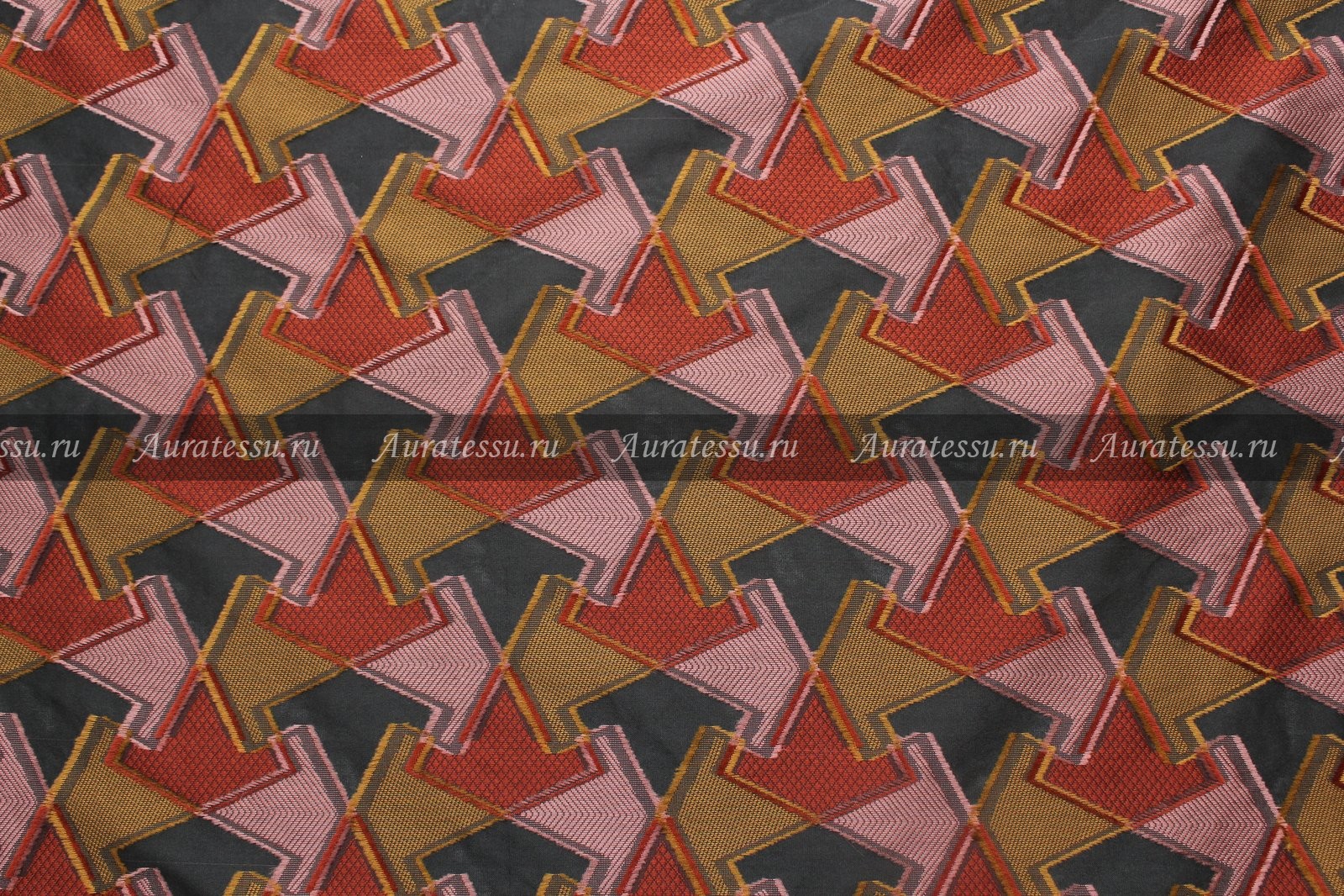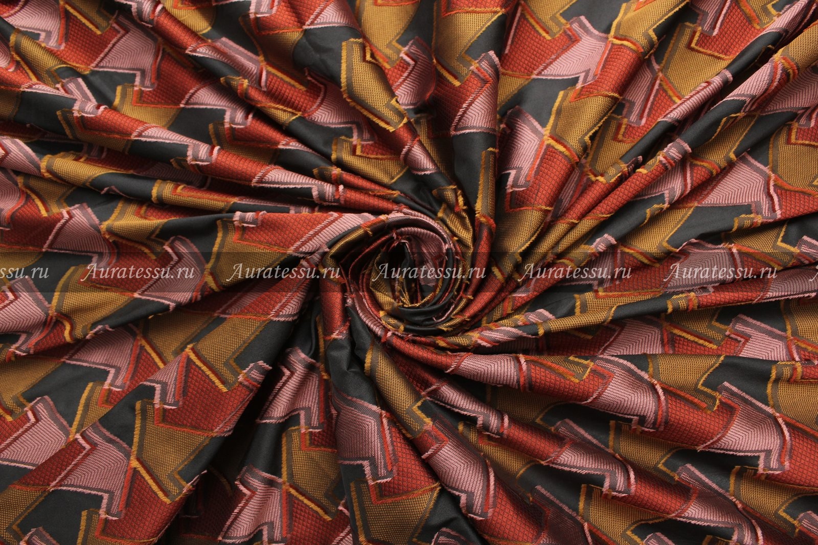Дополнительная информация:Тонкий 140 г/м, полупрозрачный (в чёрном цвете), жаккард на шифоне чёрного цвета. По лицевой стороне геометрические фигурки 6*4,5 см в розовом, горчично-оливковом, терракотовом цвете. Контуры фигурок с бахрамой-ресничками. Ткань держит форму. Подходит для пошива лёгкой плательной, костюмной одежды не узких силуэтов. Рекомендации по уходуЖаккардовые ткани с составом 100% полиамид: 100% полиамид или полиамид с эластаном (в том числе полиамид более 50%+ ацетат): плательная, костюмная группа. Ткани жаккардовых переплетений, в состав которых входит в основном полиамид с добавлением вискозы, ацетата и эластана можно стирать в машине при температуре до 30°С в щадящем режиме. Можно отжимать в барабане, но всегда лучше на оборотах до 500. Синтетические ткани практически не дают усадку и не мнутся. Для сушки их нужно подвешивать лучше наизнанку. Эти ткани сохнут быстро и иногда не нуждаются в утюжке. Если вы хотите их отутюжить, то делайте это с изнаночной стороны с паром. Гладить на "шелке", можно слегка сбрызнуть. Жаккарды, с шёлковыми волокнами: Рекомендации производителя - профессиональная химчистка. При таком составе, мы тоже не рекомендуем стирать ткань, но вы можете попробовать на кусочке, оставшемся от кроя: ручная стирка, вода до 30°С, не замачивать, мягкие моющие средства для шёлка, стирать только загрязненные места, отжим в полотенце, сушка в горизонтальном расправленном виде изнанкой вверх, гладить на шелке. Вкусочек побольше, чтобы было видно, как поведёт себя ткань.