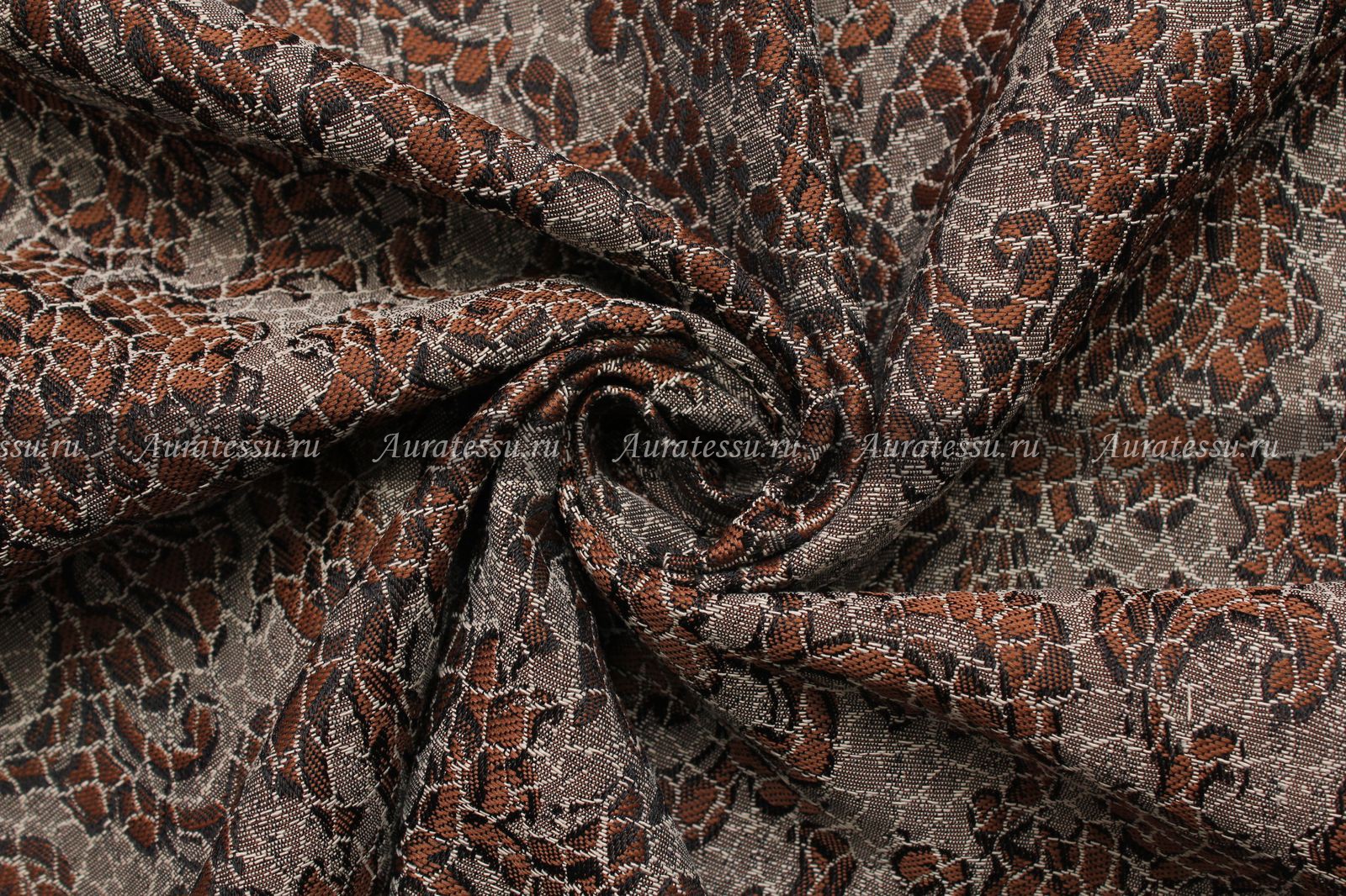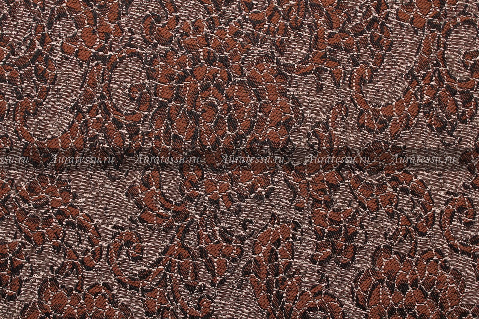- Жаккард бежево-коричневый с ажурным цветочным узором
