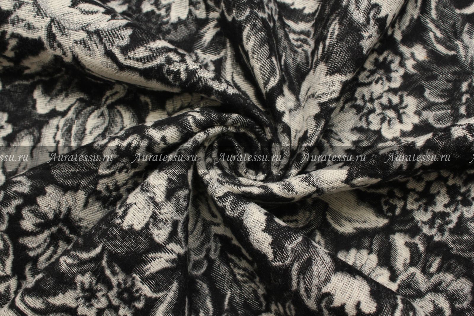 Жаккард-пальтово-костюмный на суровой основе с чёрным тонированным бархатистым узором