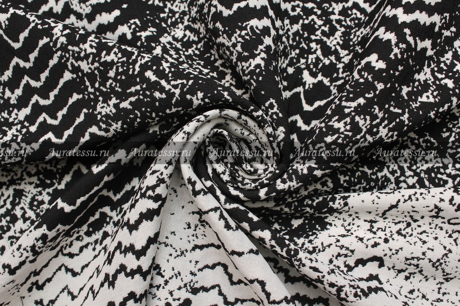Дополнительная информация:Двухстороннее жаккардовое полотно с купонным узором в чёрно-белой гамме. Ткань плотностью 350 г/м. мягкая и упругая. Рисунок с переходом цвета от тёмного к светлому. Линия перехода не чёткая, волной с большой амплитудой. Рисунок в виде чёрточек, точек и волнистых полосок. Подходит для пошива костюмно плательной одежды прямых и объёмных силуэтов. Рекомендации по уходуЖаккардовые ткани с составом 100% полиамид: 100% полиамид или полиамид с эластаном (в том числе полиамид более 50%+ ацетат): плательная, костюмная группа. Ткани жаккардовых переплетений, в состав которых входит в основном полиамид с добавлением вискозы, ацетата и эластана можно стирать в машине при температуре до 30°С в щадящем режиме. Можно отжимать в барабане, но всегда лучше на оборотах до 500. Синтетические ткани практически не дают усадку и не мнутся. Для сушки их нужно подвешивать лучше наизнанку. Эти ткани сохнут быстро и иногда не нуждаются в утюжке. Если вы хотите их отутюжить, то делайте это с изнаночной стороны с паром. Гладить на "шелке", можно слегка сбрызнуть. Жаккарды, с шёлковыми волокнами: Рекомендации производителя - профессиональная химчистка. При таком составе, мы тоже не рекомендуем стирать ткань, но вы можете попробовать на кусочке, оставшемся от кроя: ручная стирка, вода до 30°С, не замачивать, мягкие моющие средства для шёлка, стирать только загрязненные места, отжим в полотенце, сушка в горизонтальном расправленном виде изнанкой вверх, гладить на шелке. Вкусочек побольше, чтобы было видно, как поведёт себя ткань.